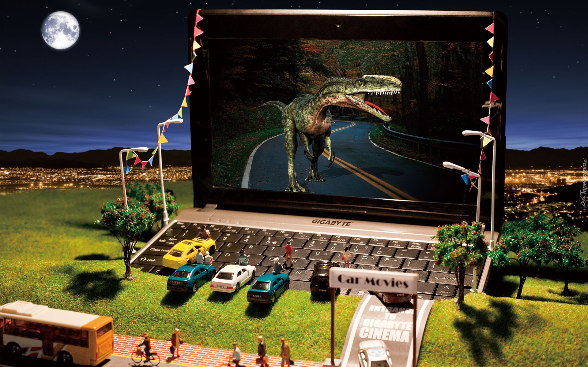 Edytor tapety: Laptop, Dinozaur, Samochody