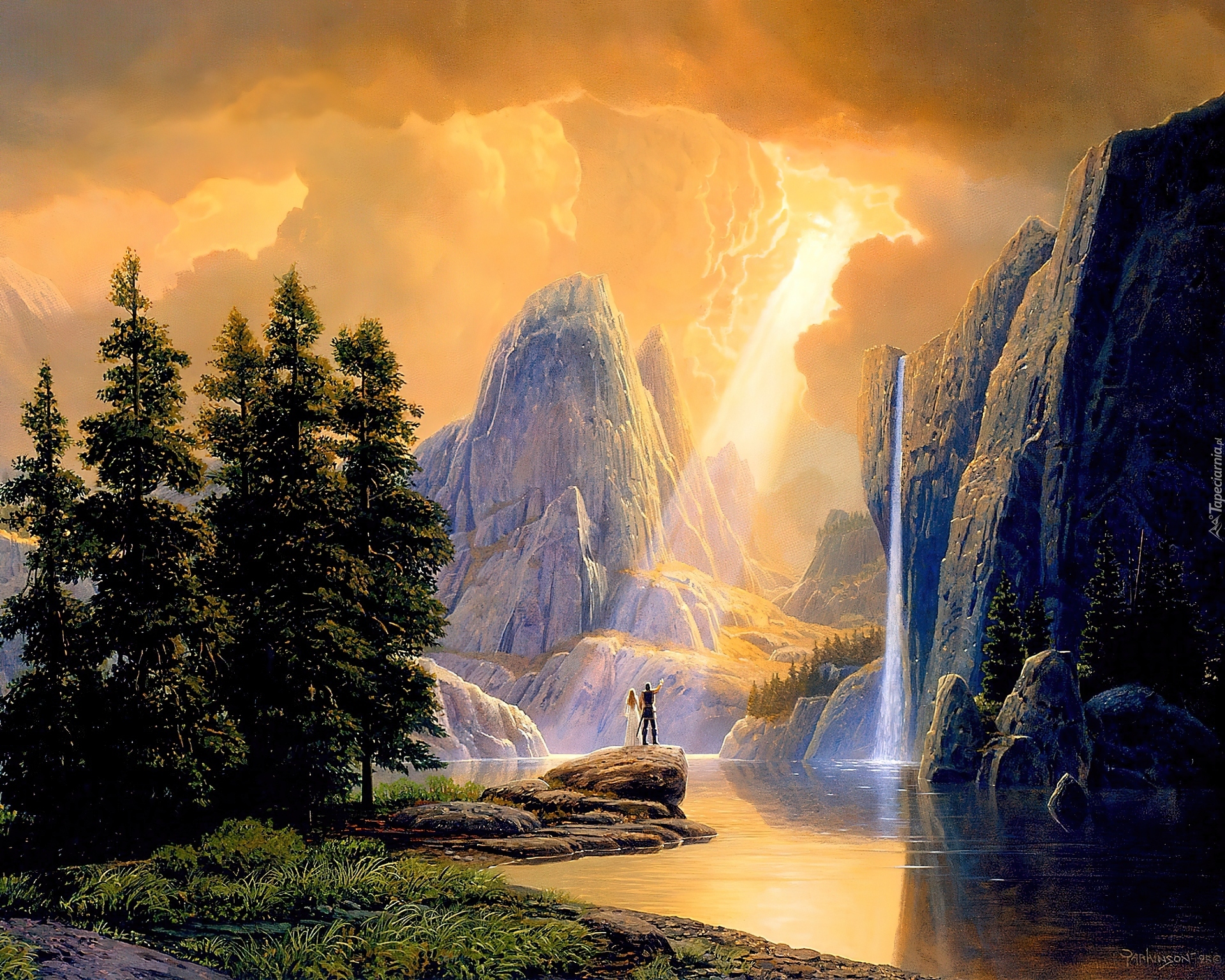 Edytor tapety: Skały, Para, Promienie, Słoneczne, Widoczek, Malarstwo