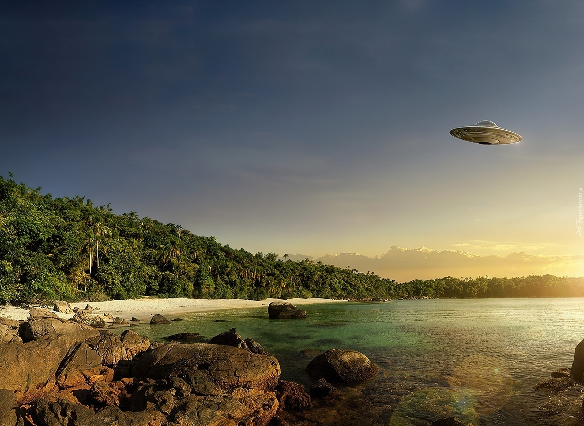 Edytor tapety: Jezioro, Las, Statek Kosmiczny
