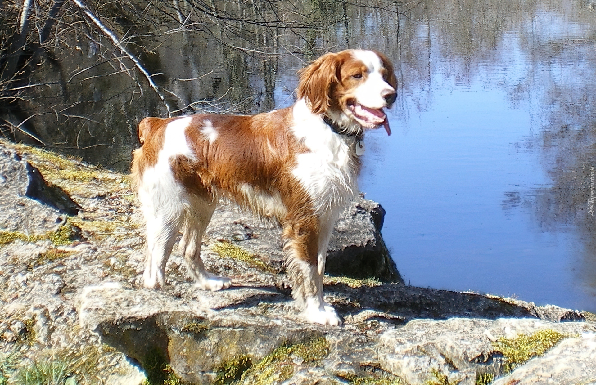 Edytor tapety: Spaniel, Skała, Woda