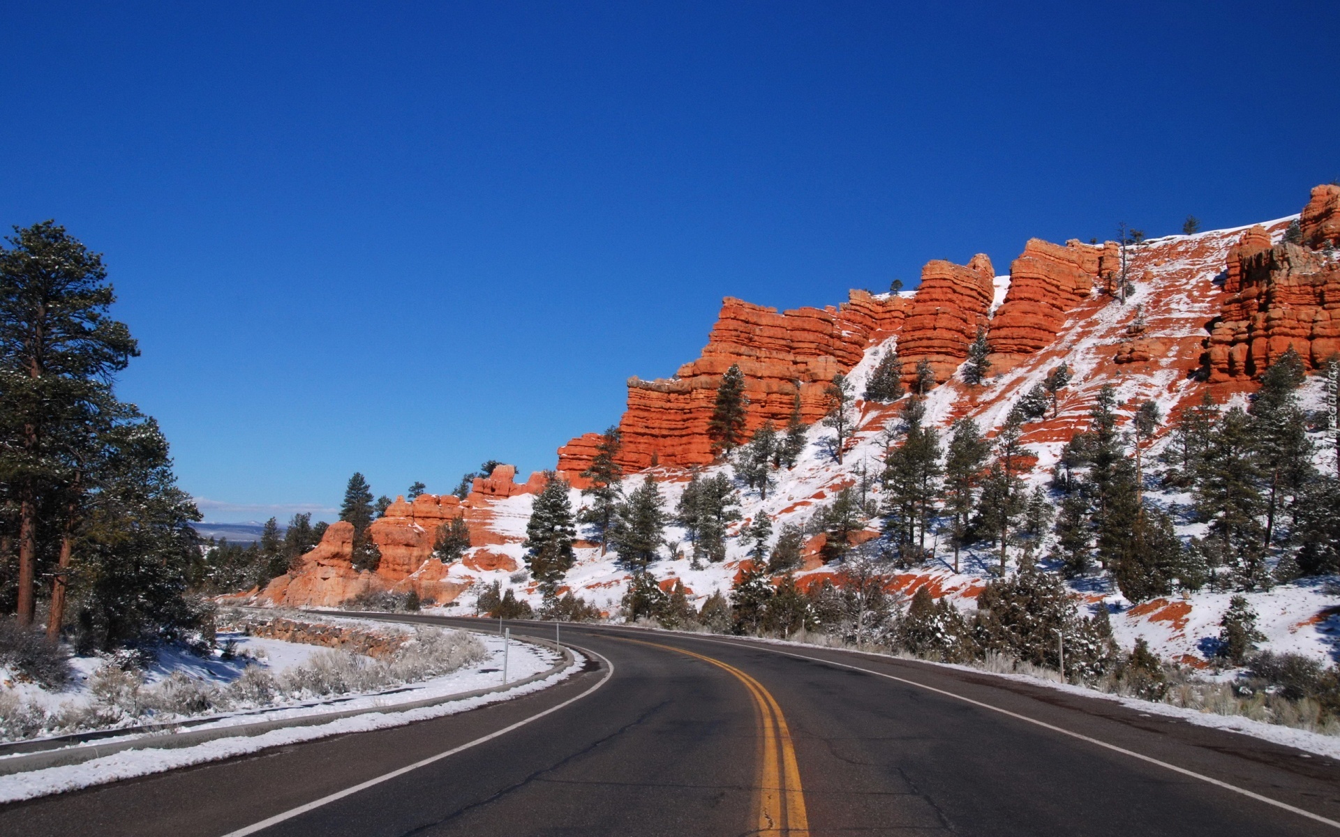 Edytor tapety: Droga, Skały, Drzewa