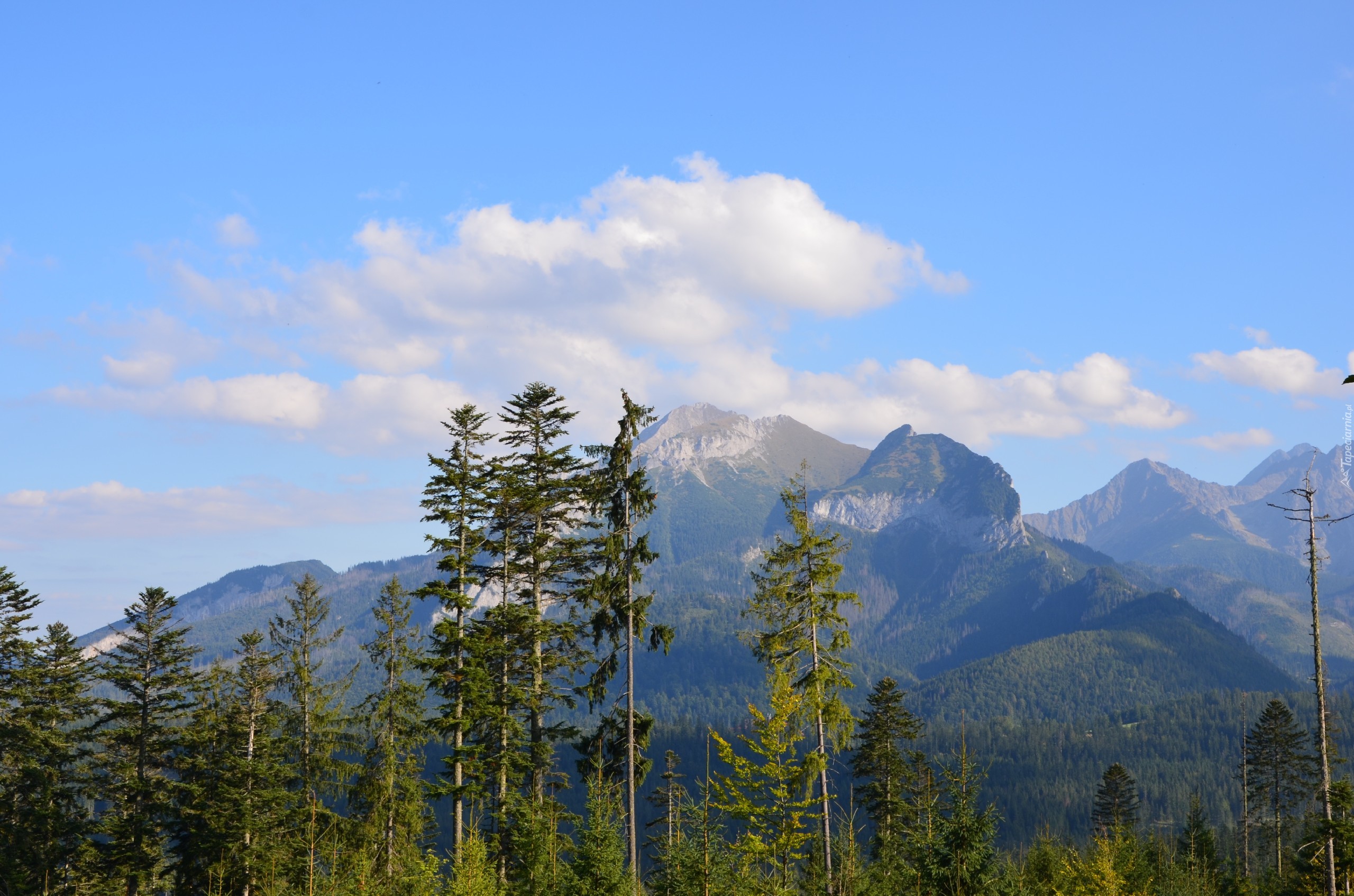 Edytor tapety: Góry, Drzewa, Niebo, Chmura