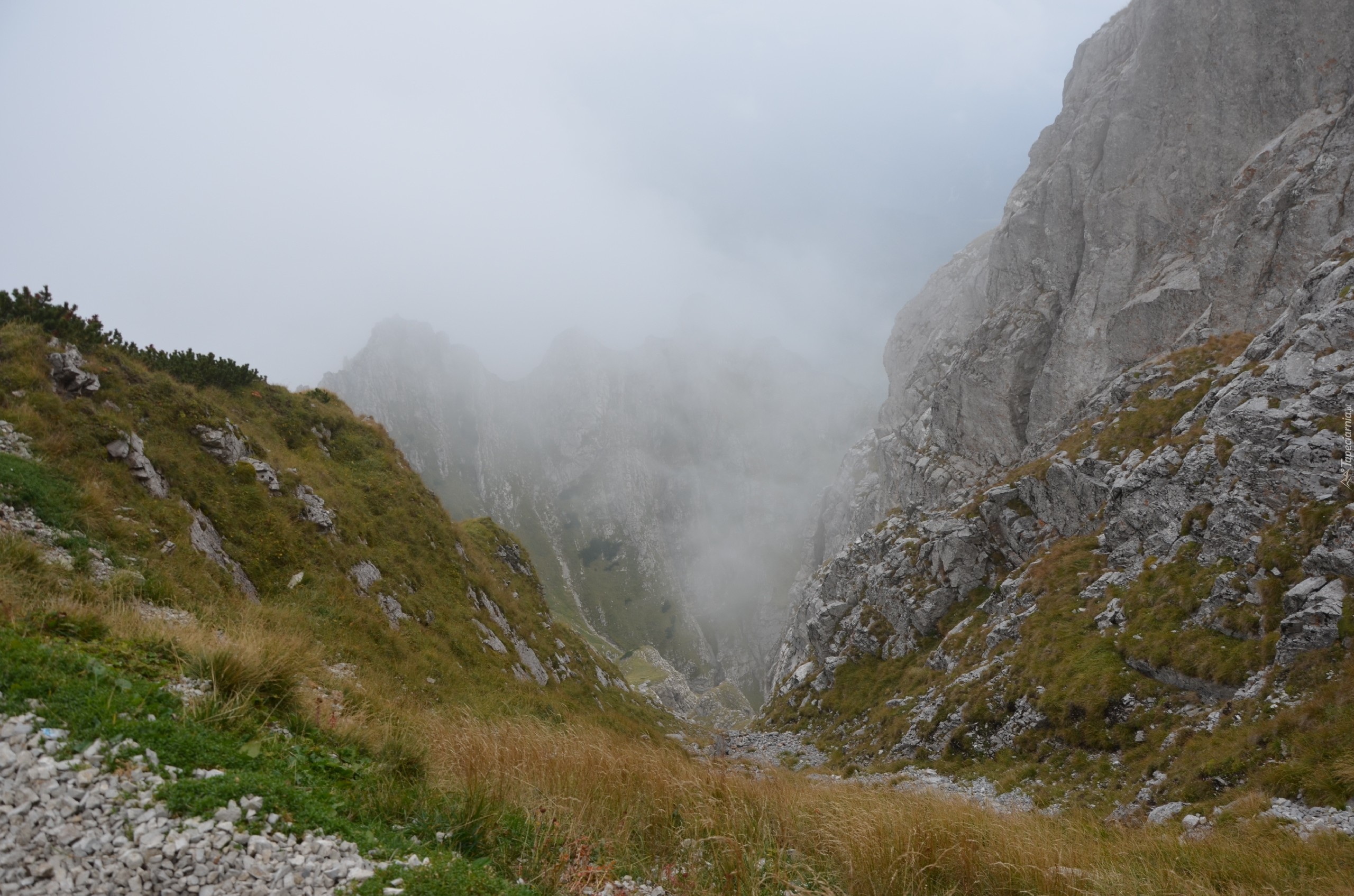 Edytor tapety: Góry, Mgła, Strome, Zejście