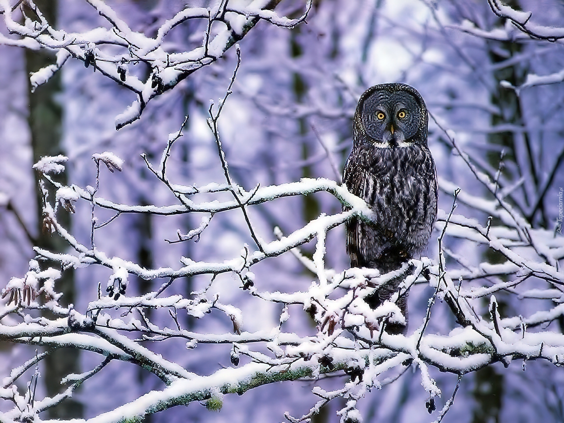 Edytor tapety: Sowa, Gałęzie, Zima