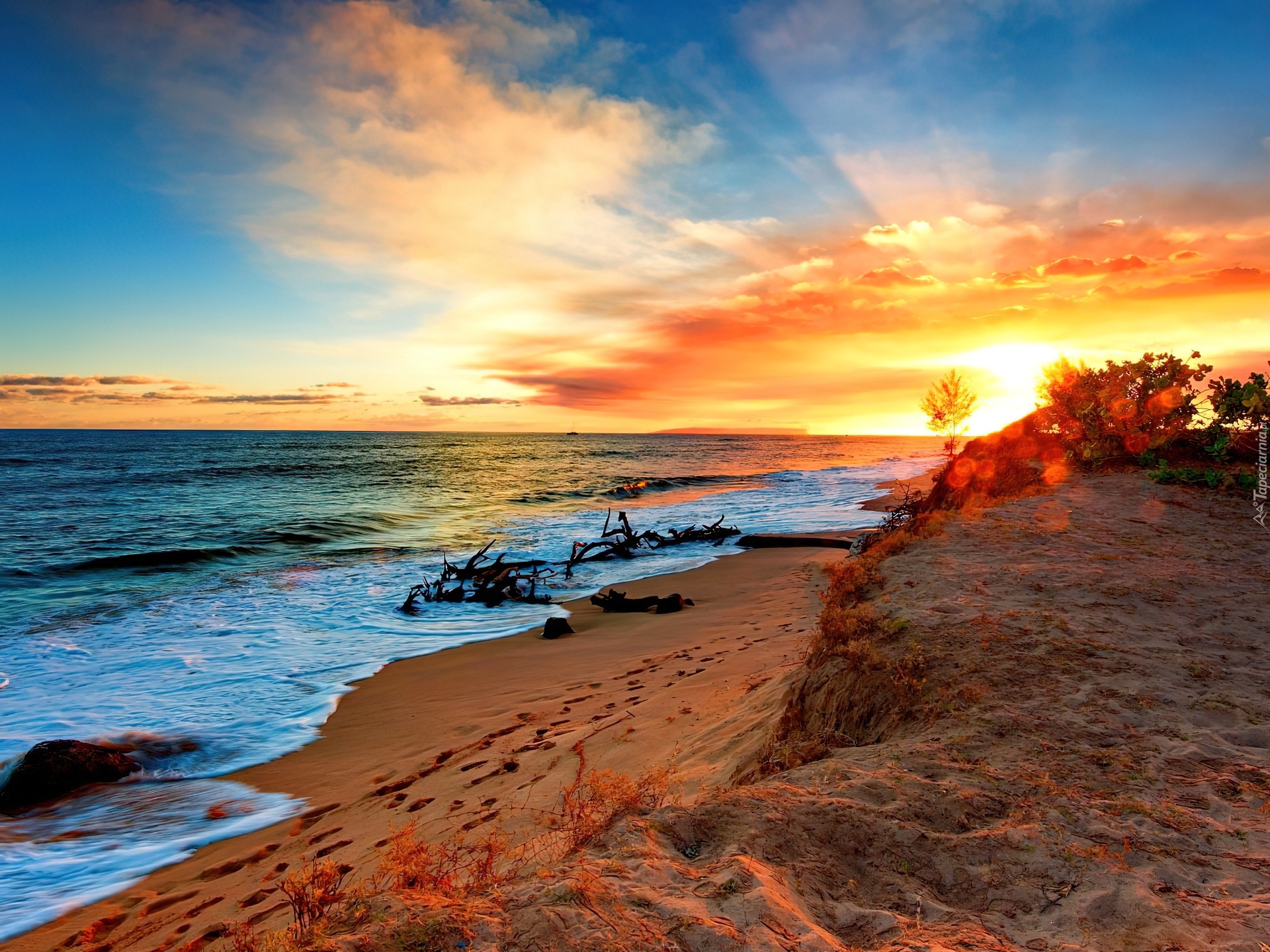 Edytor tapety: Morze, Plaża, Wydmy, Zachód, Słońca