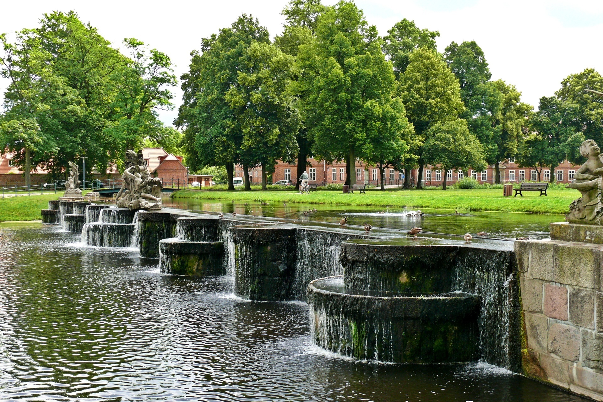 Edytor tapety: Fontanna, Woda, Drzewa, Park