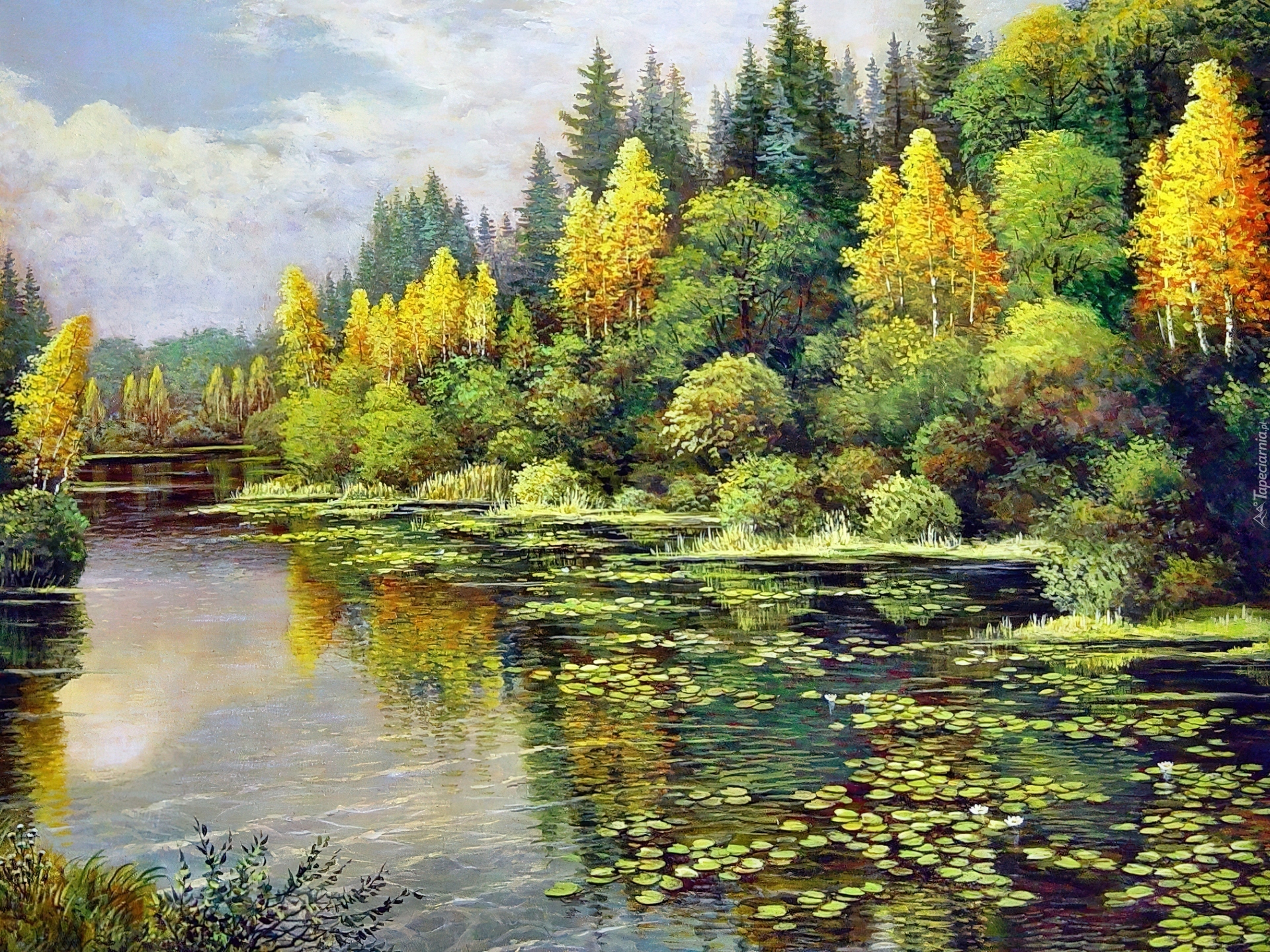Edytor tapety: Rzeka, Las, Jesień, Obraz