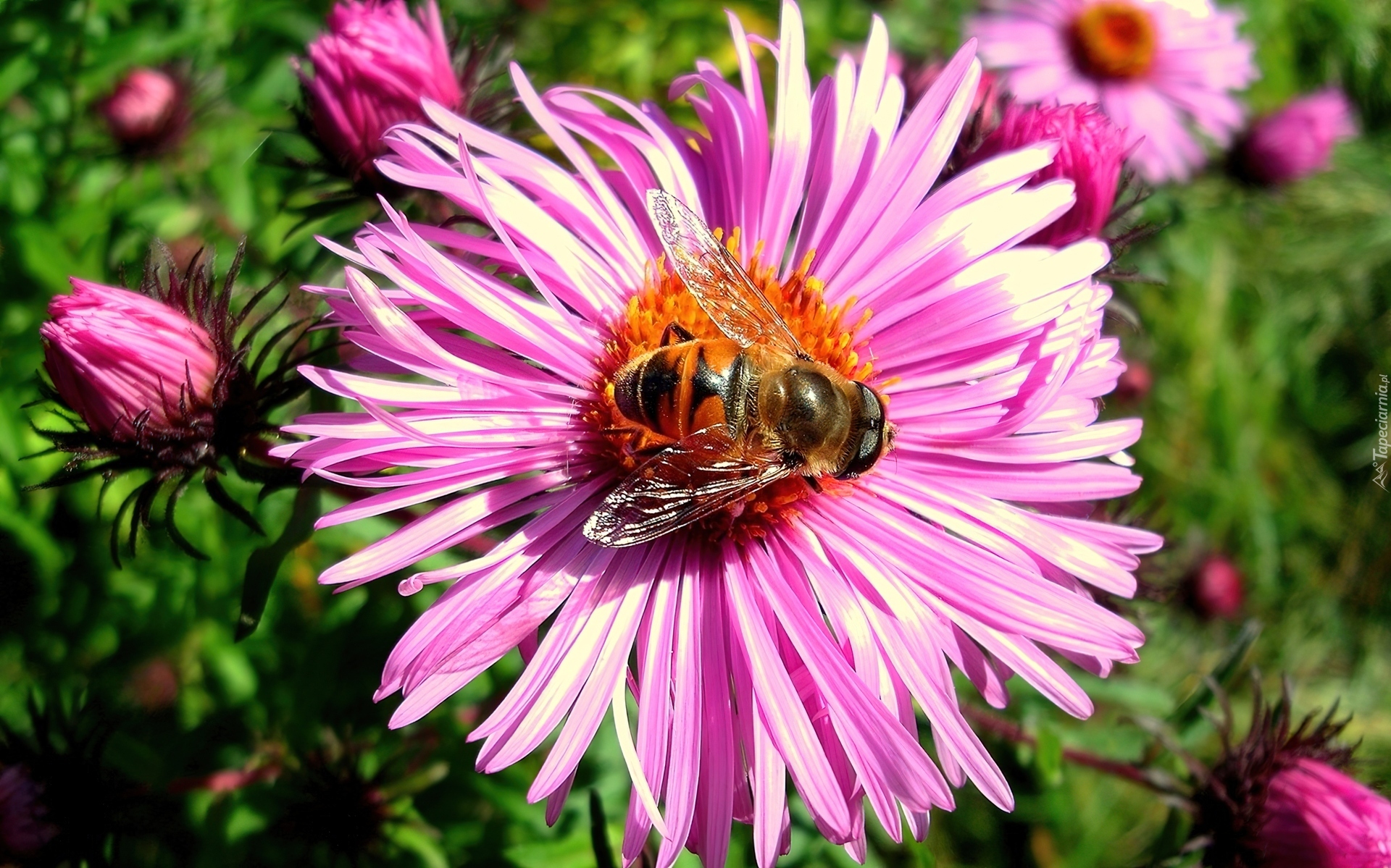 Edytor tapety: Pszczoła, Na, Różowym, Astrze