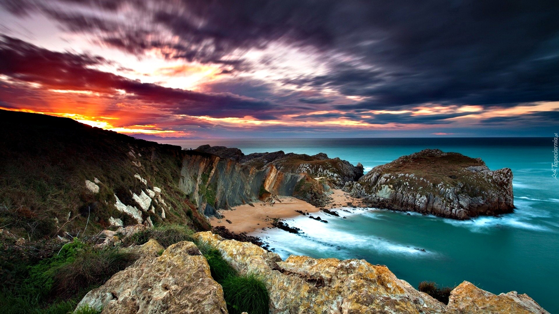 Edytor tapety: Morze, Skały, Niebo, Zachód Słońca