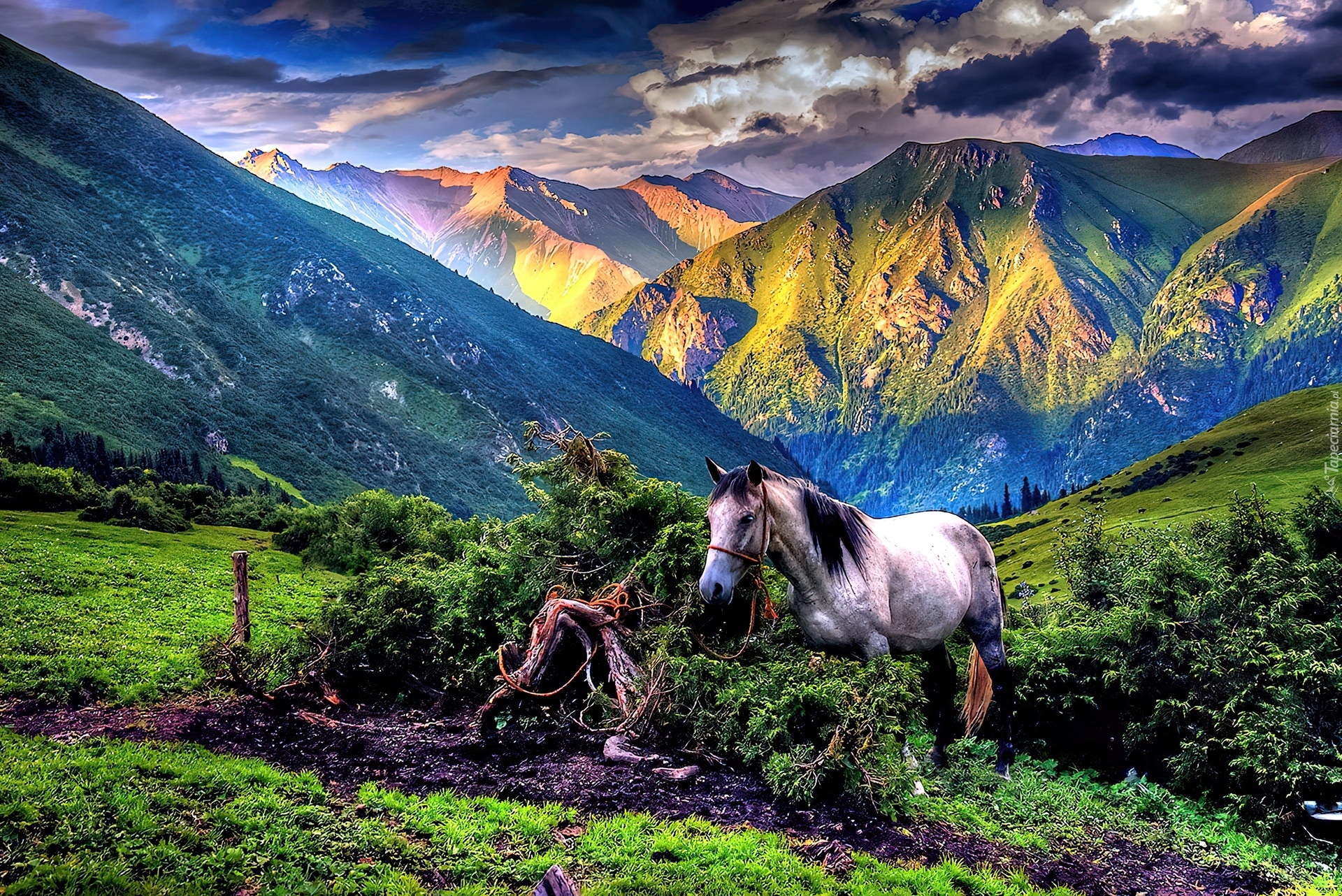 Edytor tapety: Góry, Chmury, Koń