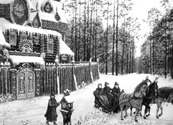Edytor tapety: Zima, Dom, Las, Konie, Sanie