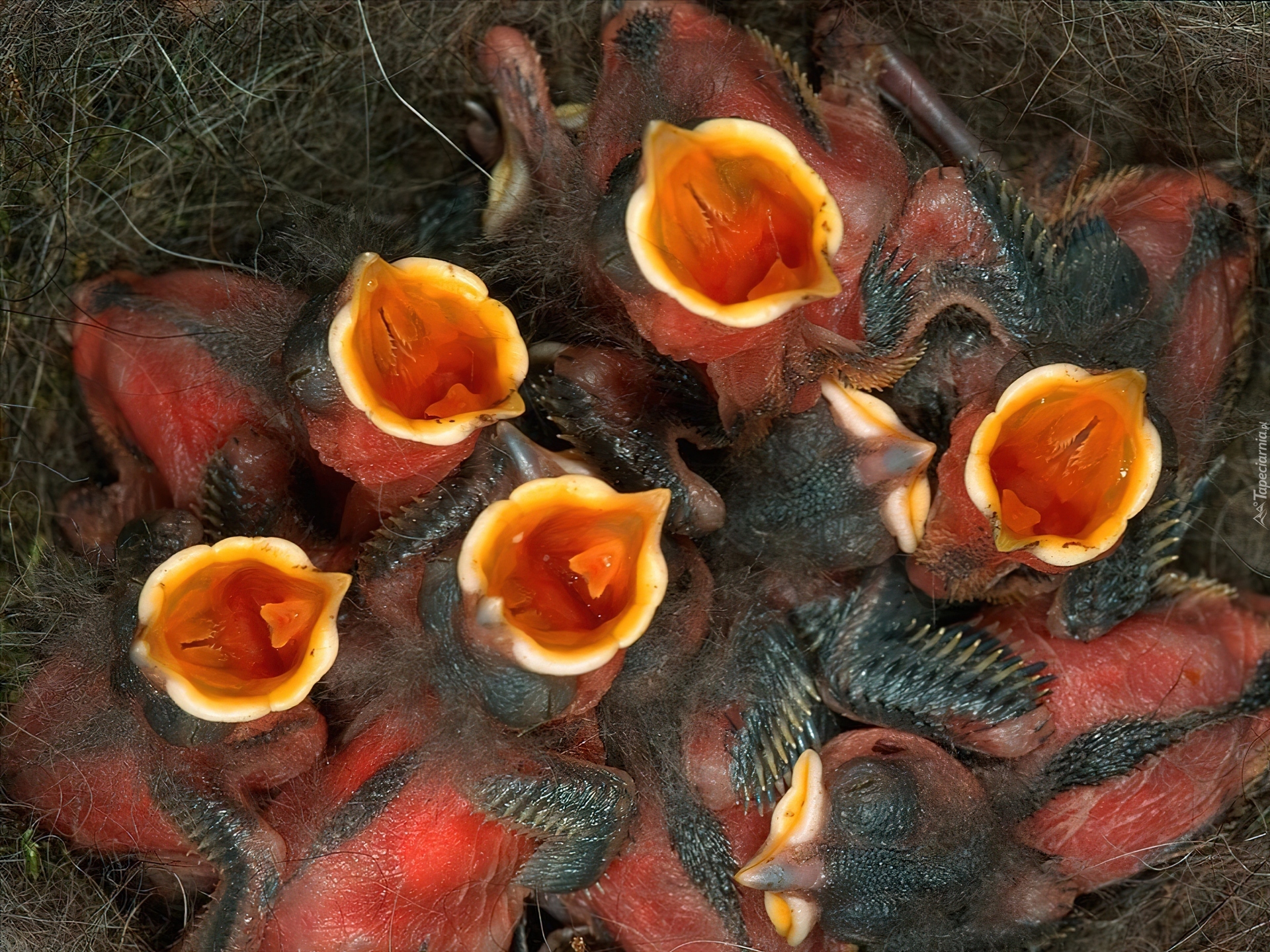 Edytor tapety: Głodne, Pisklęta, W, Gnieździe