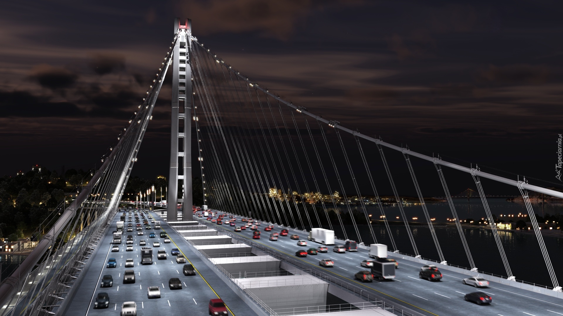 Edytor tapety: Most, Oakland Bay, Noc, Światła