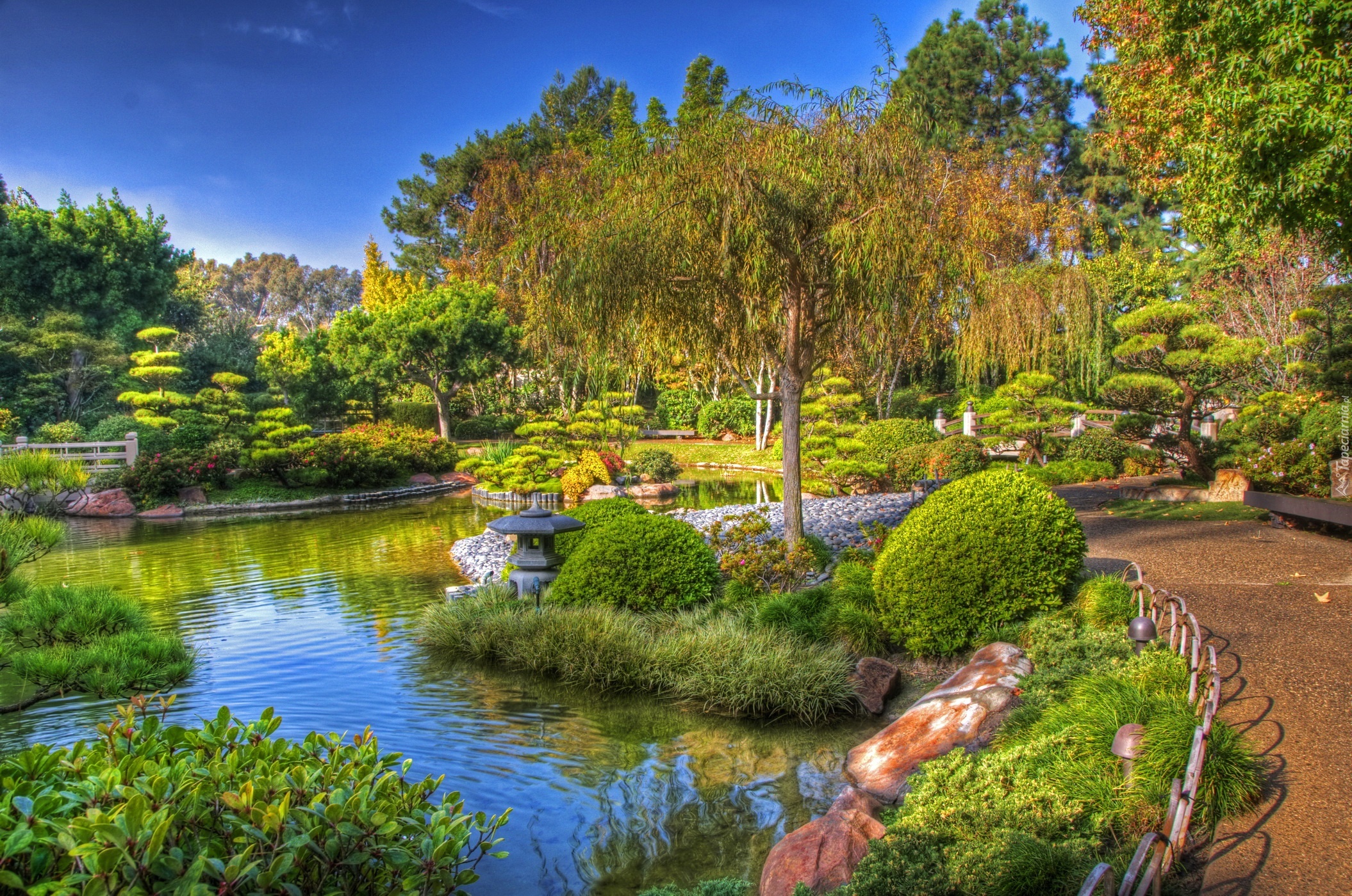 Edytor tapety: Japoński, Ogród, Drzewa, Krzewy, Staw