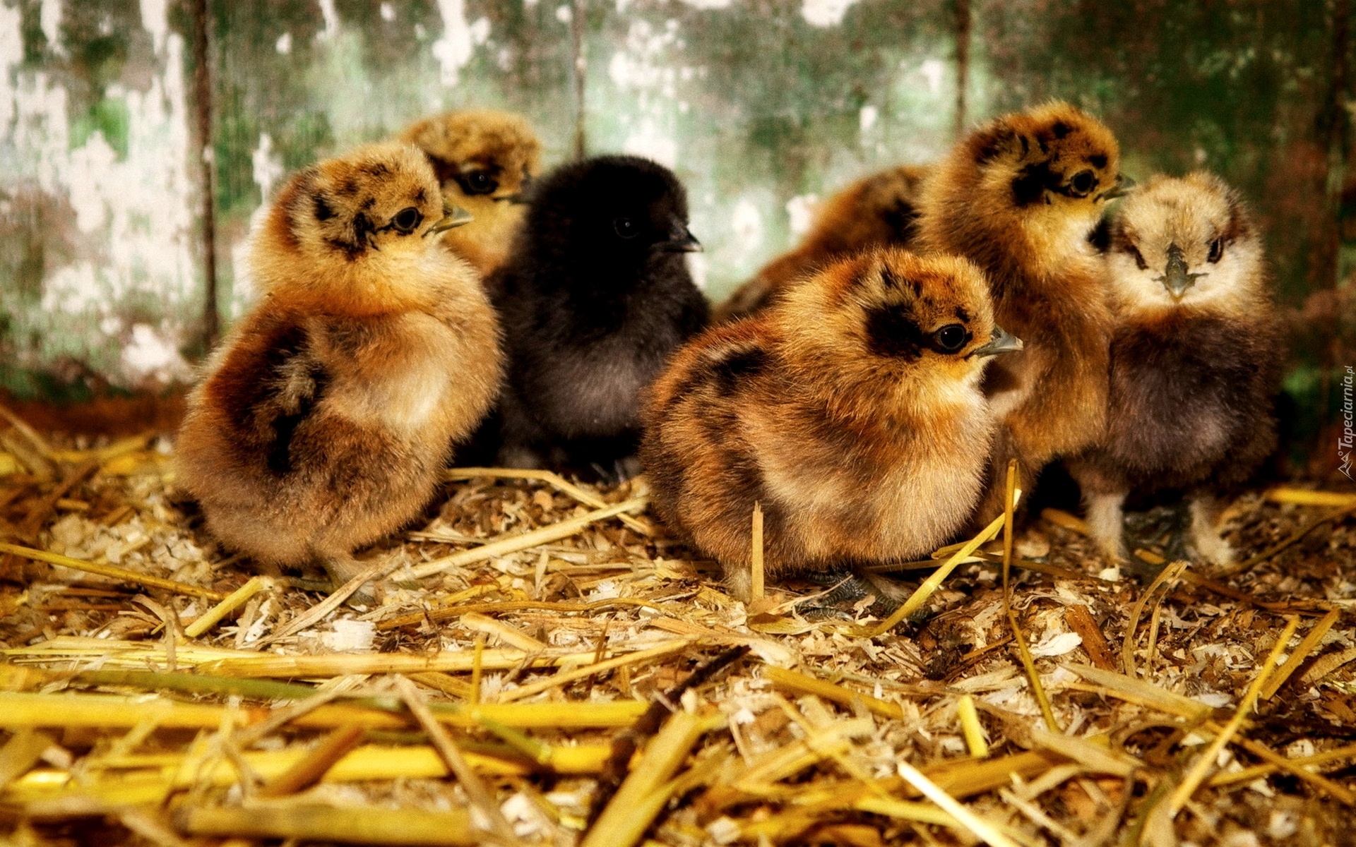 Edytor tapety: Małe, Kurczaczki, Słoma