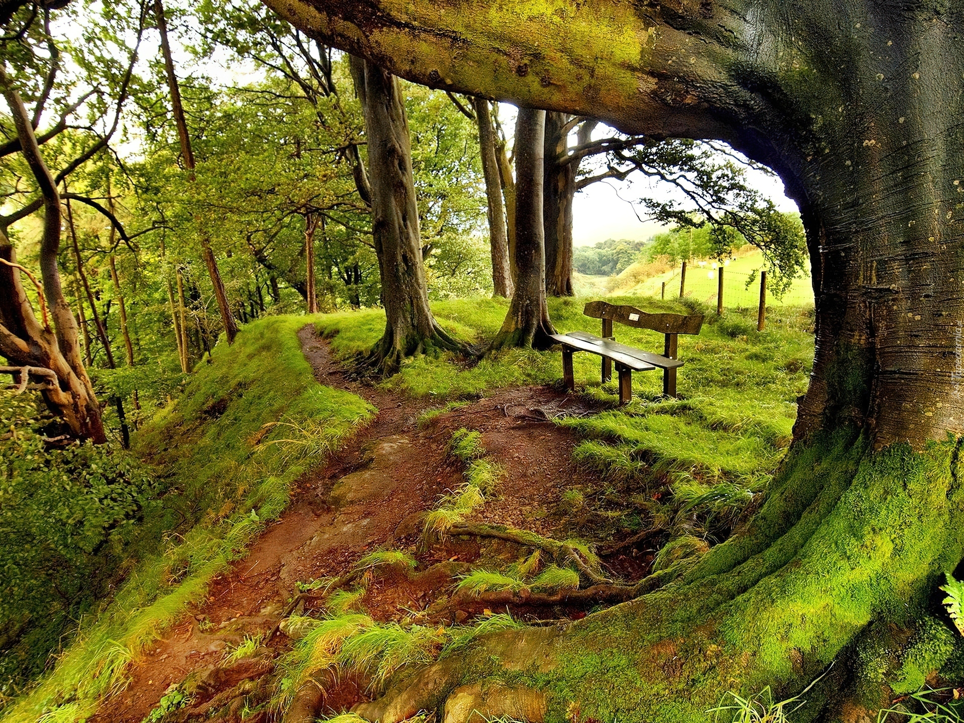 Edytor tapety: Stare, Drzewo, Mech, Ławka