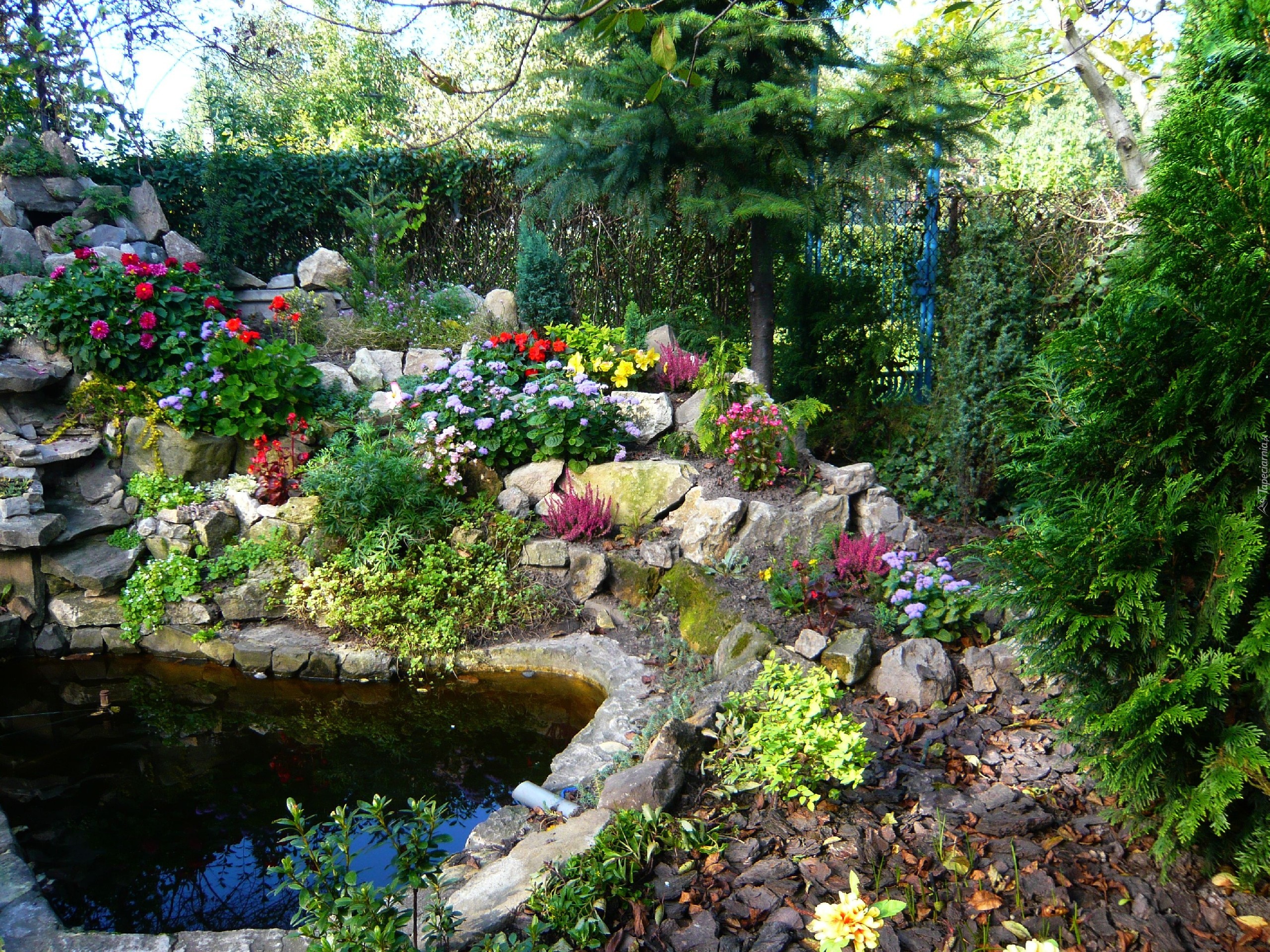 Edytor tapety: Oczko, Wodne, Kamienie, Kwiaty