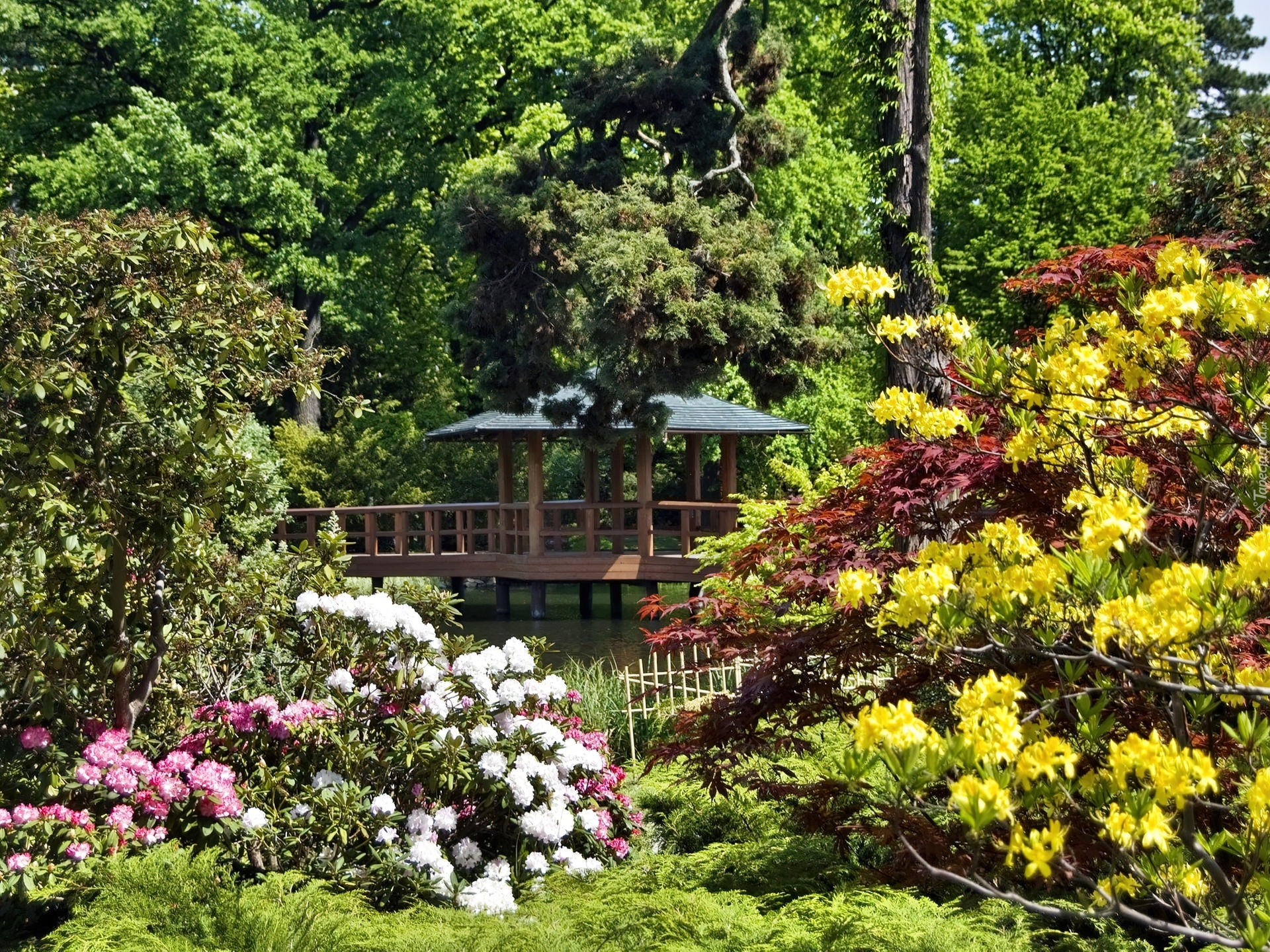 Edytor tapety: Park, Altana, Kolorowe, Rododendrony