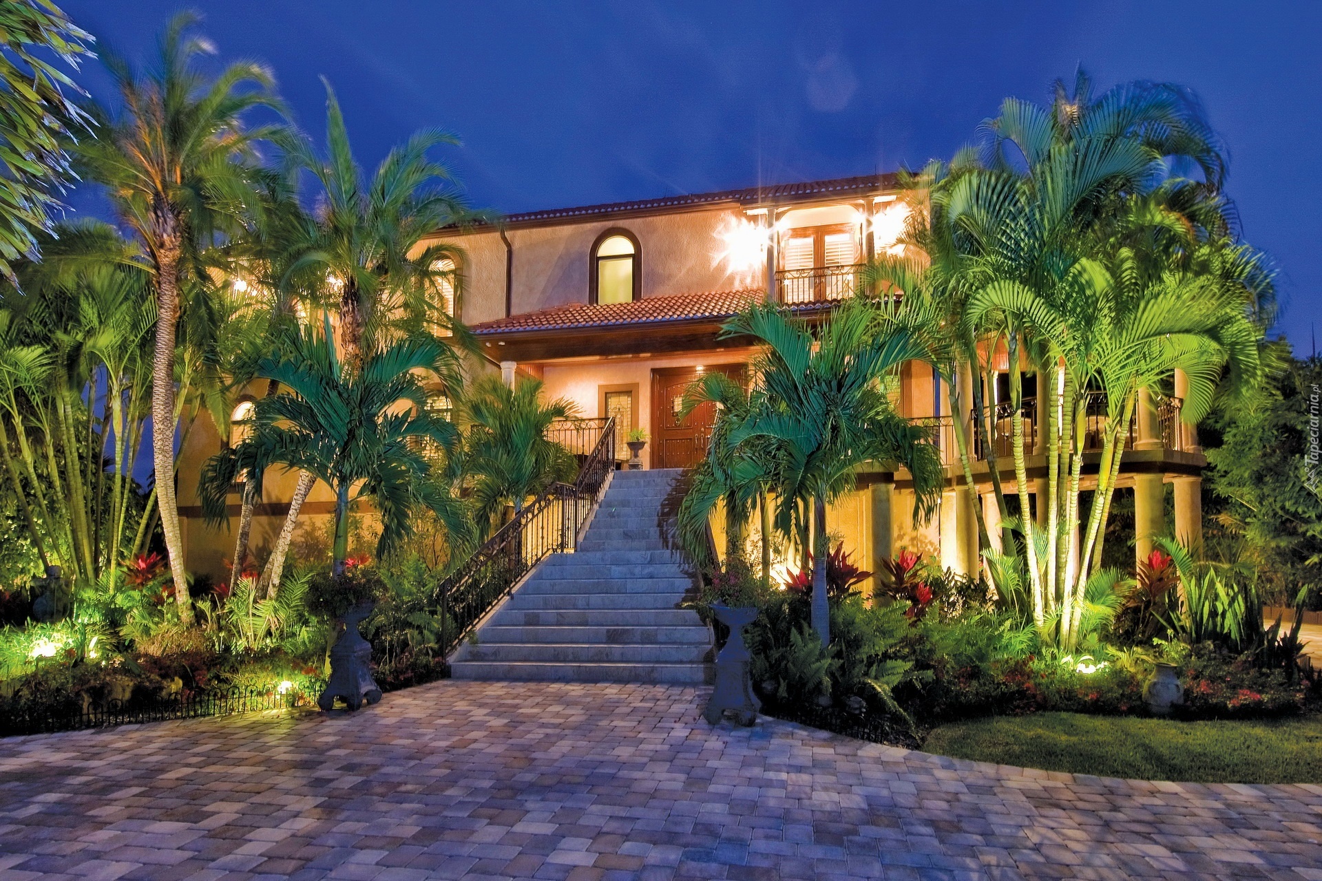 Edytor tapety: Dom, Palmy, Noc, Światło