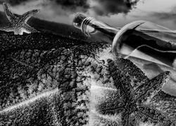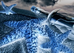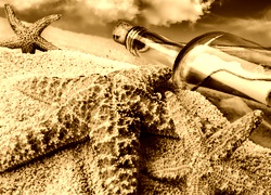 Edytor tapety: Plaża, Piasek, Rozgwiazda, Butelka, List