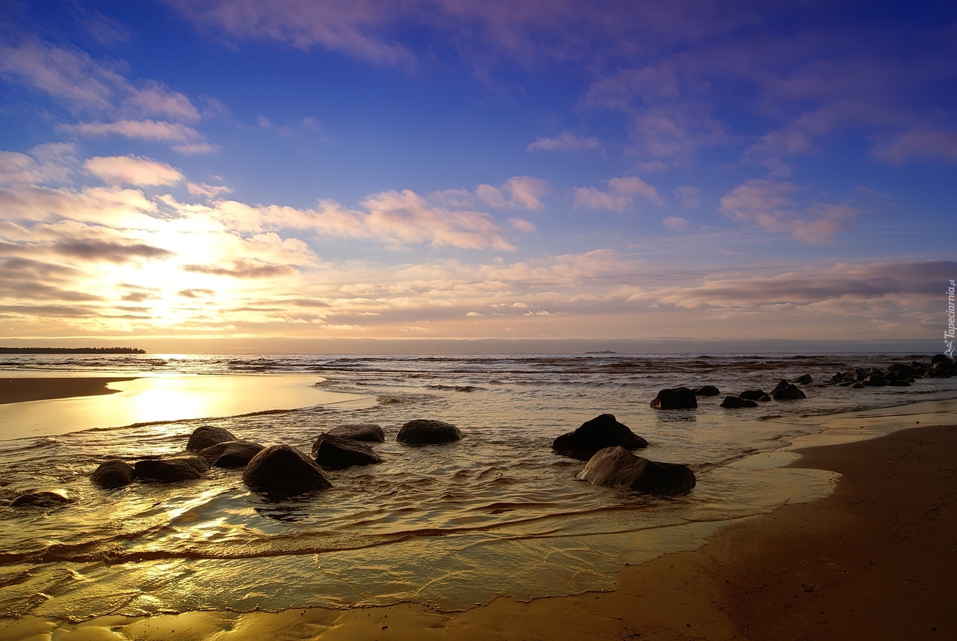 Edytor tapety: Morze, Zachód, Słońca, Kamienie