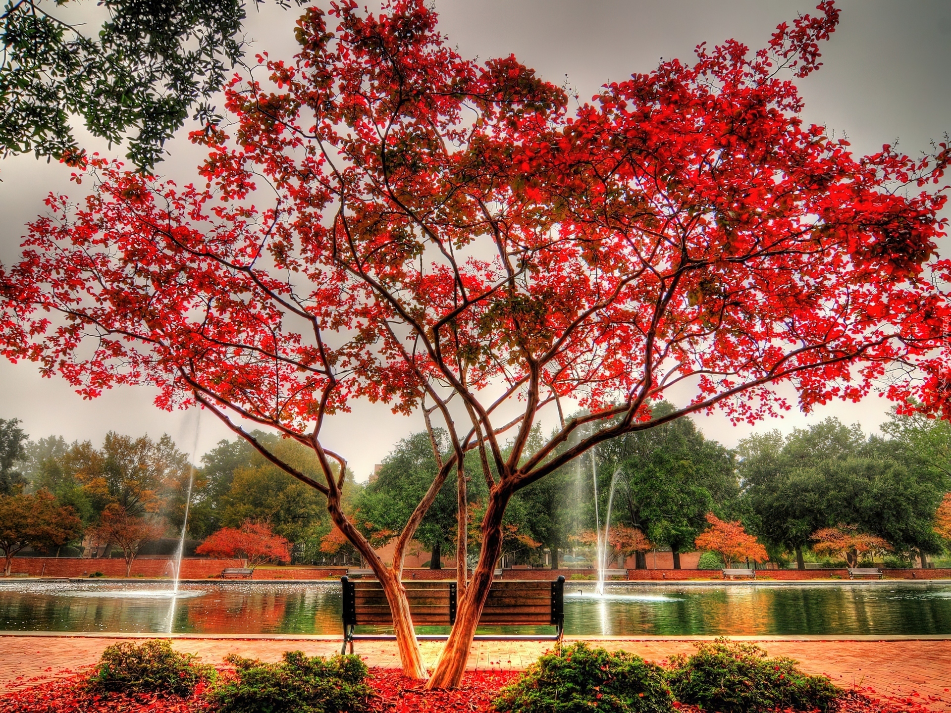 Edytor tapety: Park, Drzewo, Ławka, Jesień