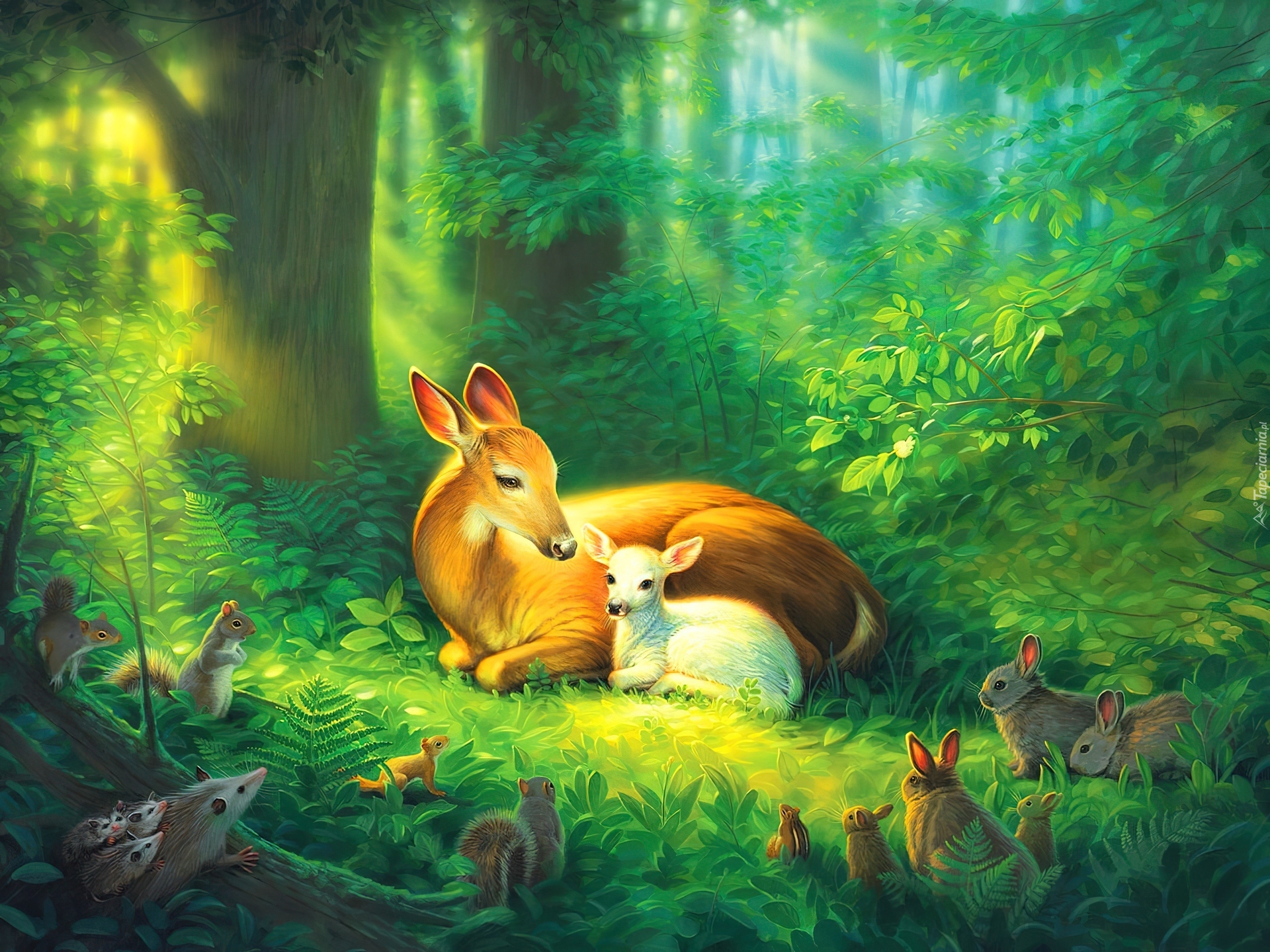 Edytor tapety: Sarenka, Króliczki, Las, Art