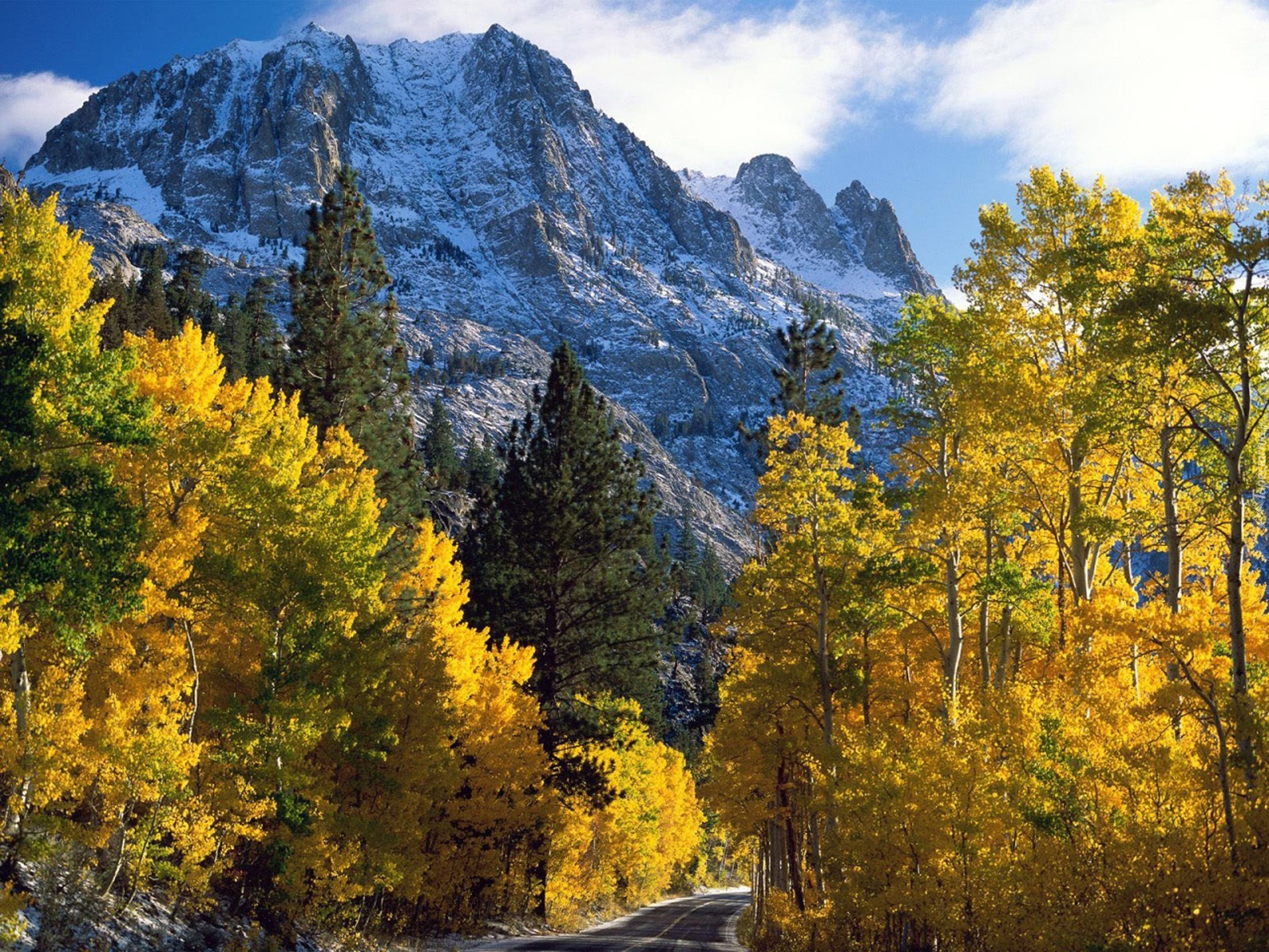 Edytor tapety: Droga, Las, Ośnieżone, Góry