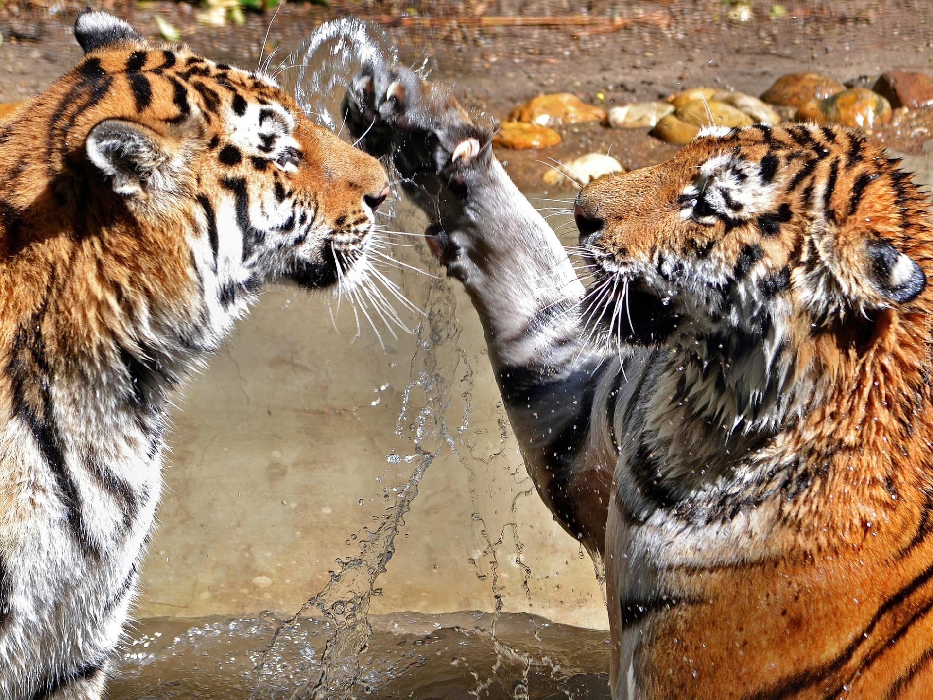 Edytor tapety: Tygrysy, Zabawa, Woda