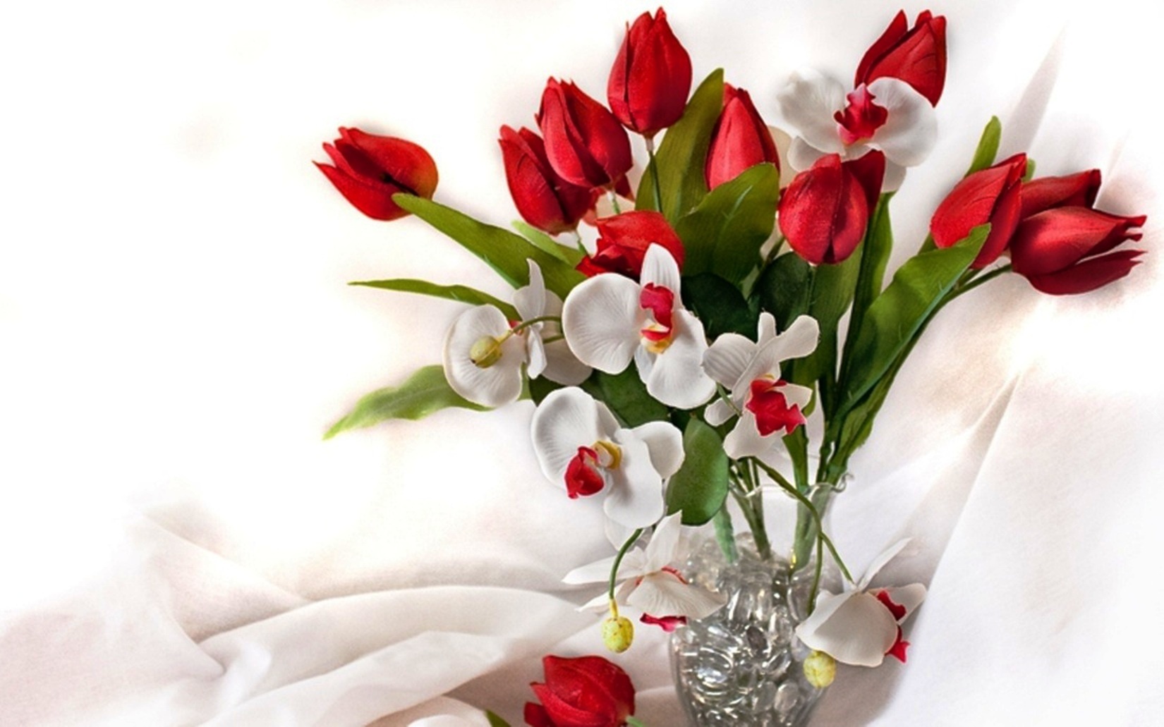 Edytor tapety: Bukiet, Kwiatów, Tulipany, Wazon