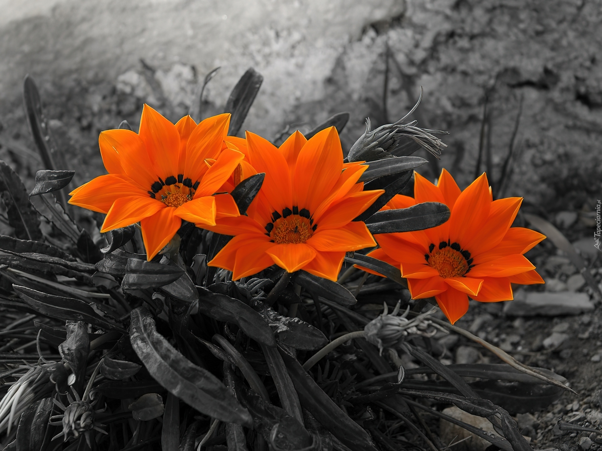 Edytor tapety: Pomarańczowe, Kwiaty, Szare, Tło
