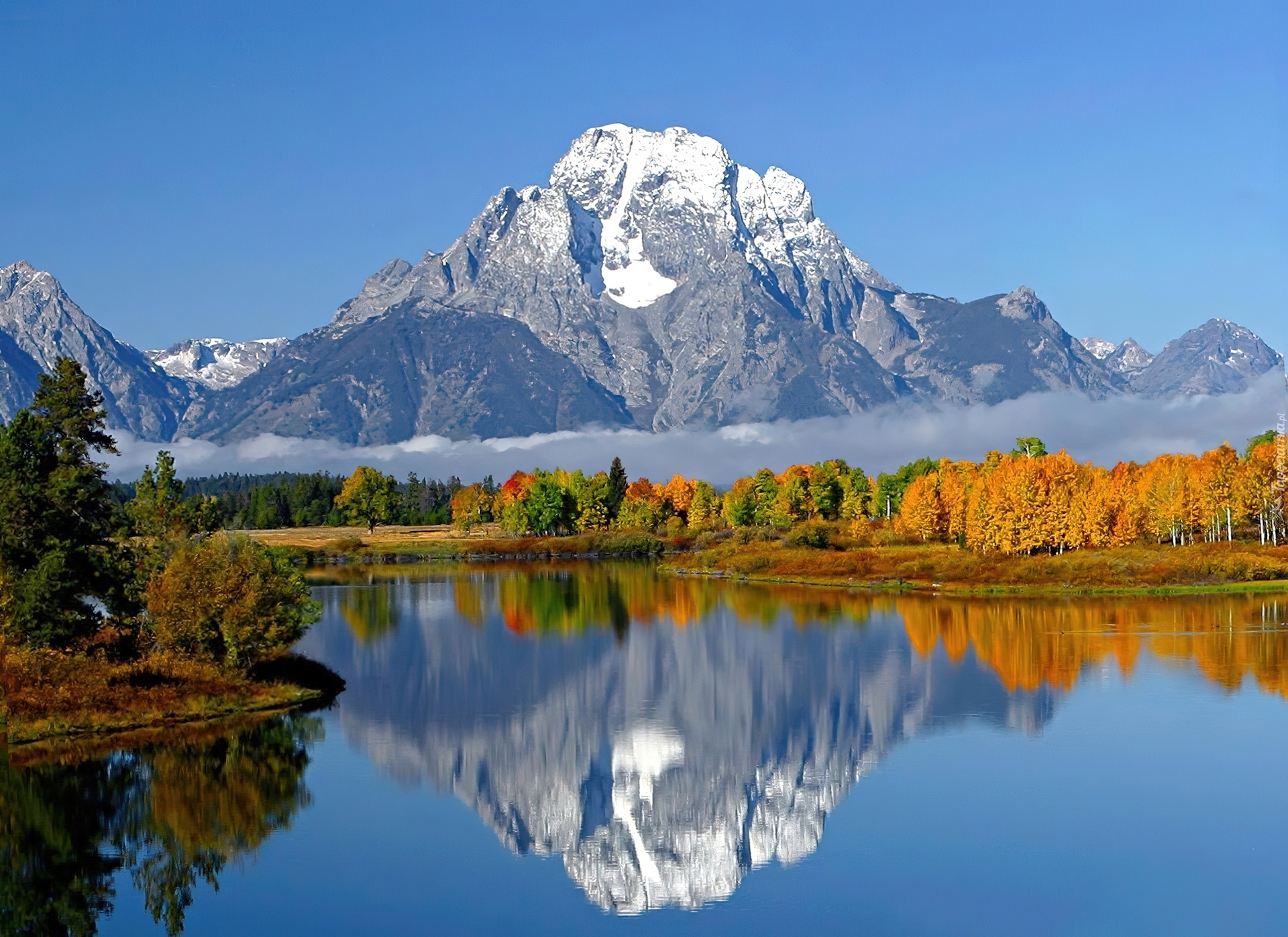 Edytor tapety: Jezioro, Drzewa, Ośnieżone, Góry, Mgła
