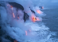 Edytor tapety: Wulkan, Lawa, Morze, Góry