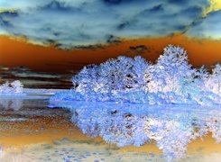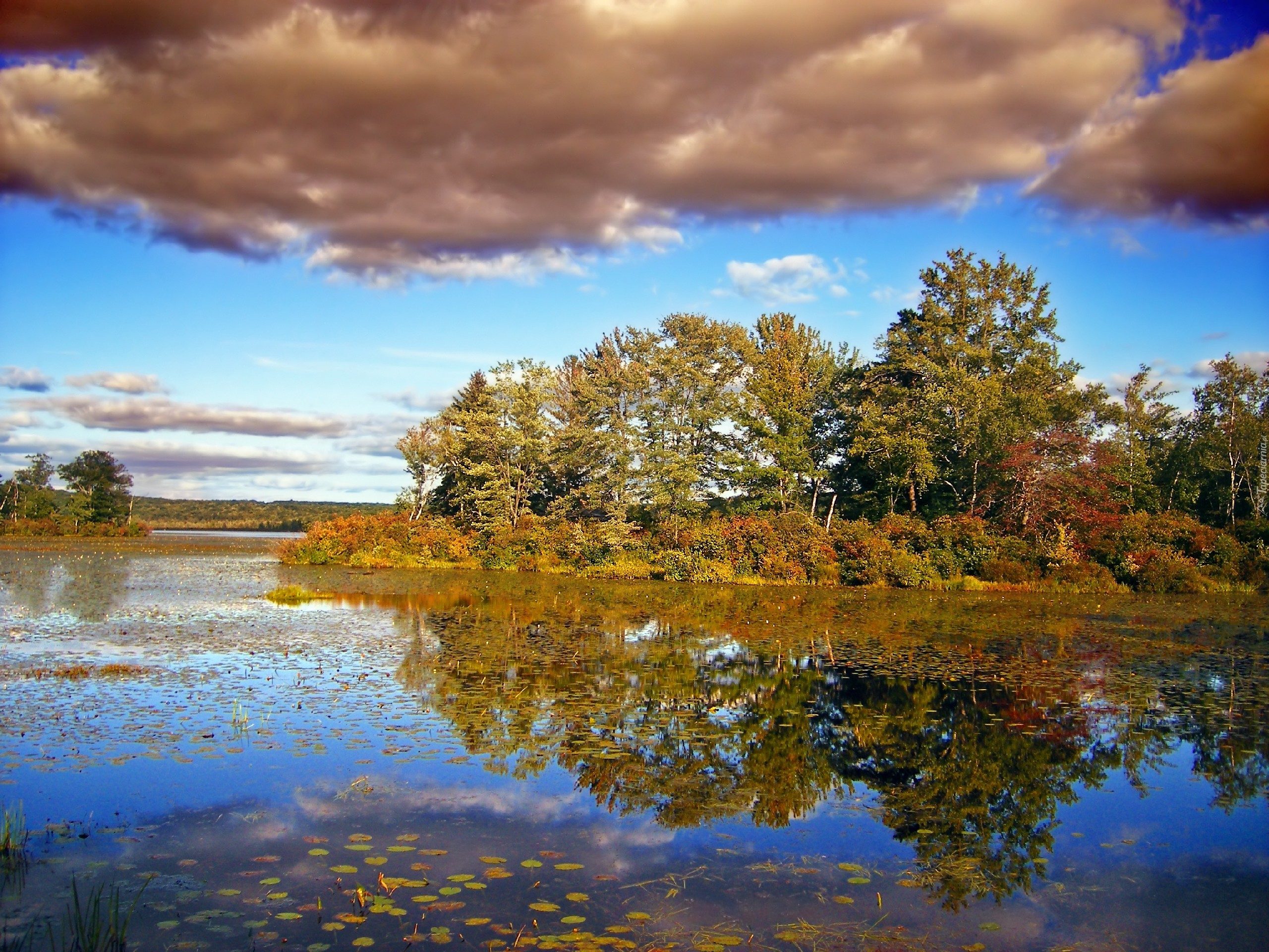 Edytor tapety: Jezioro, Drzewa, Chmury, Jesień