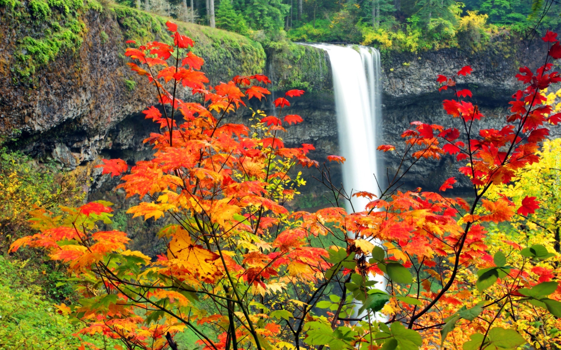 Edytor tapety: Wodospad, Drzewa, Jesień
