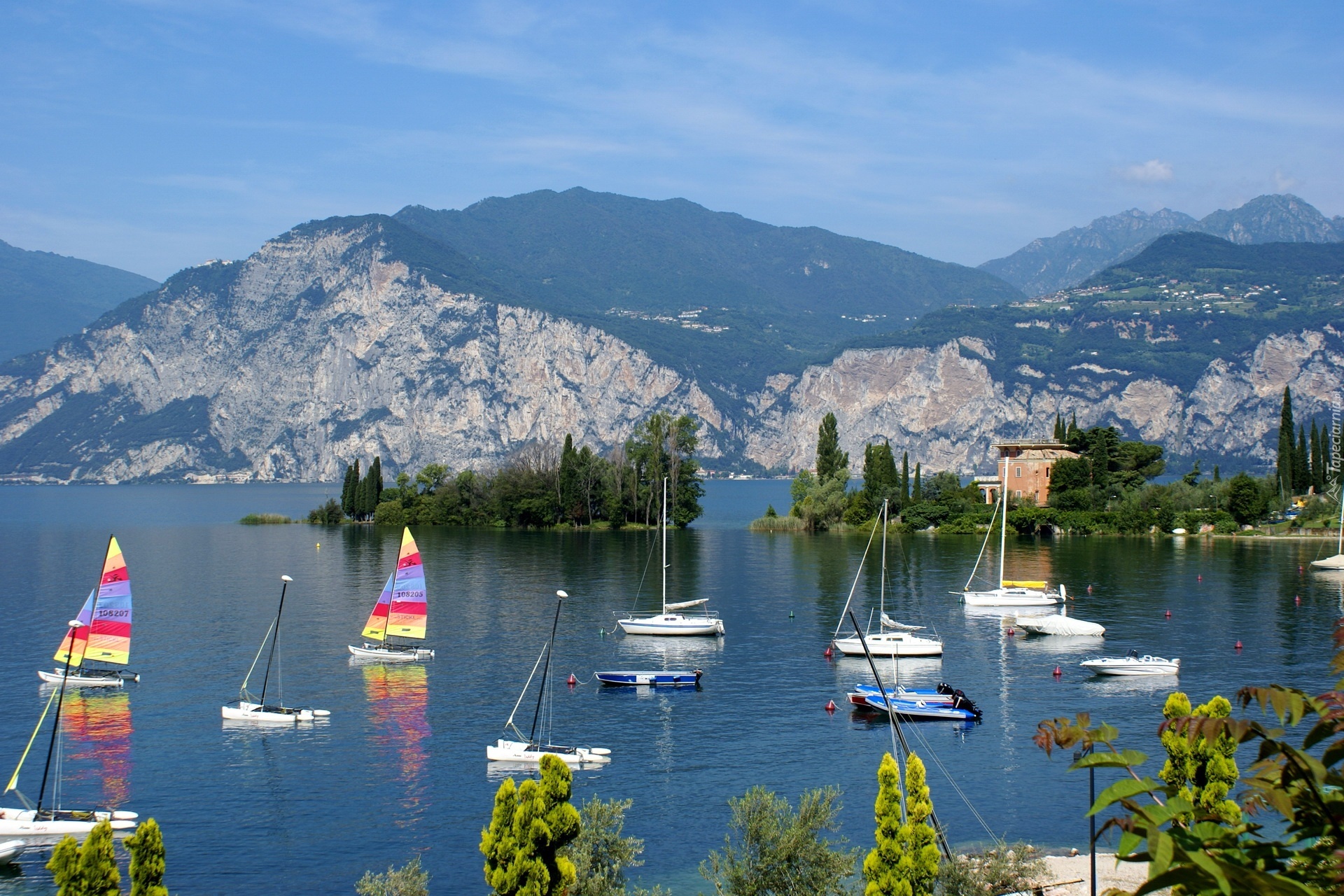 Edytor tapety: Góry, Jezioro, Łodzie