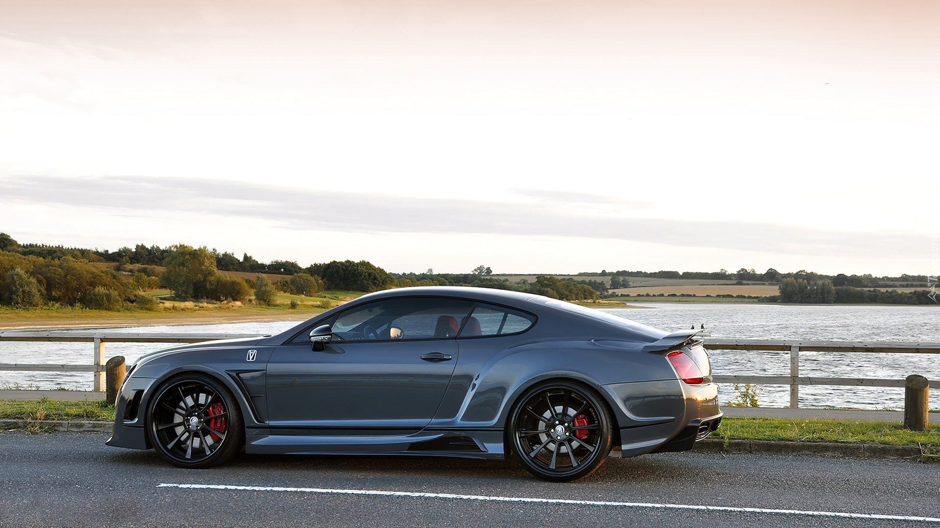Edytor tapety: Droga, Jezioro, Ogrodzenie, Samochód, Bentley GT, Tuning