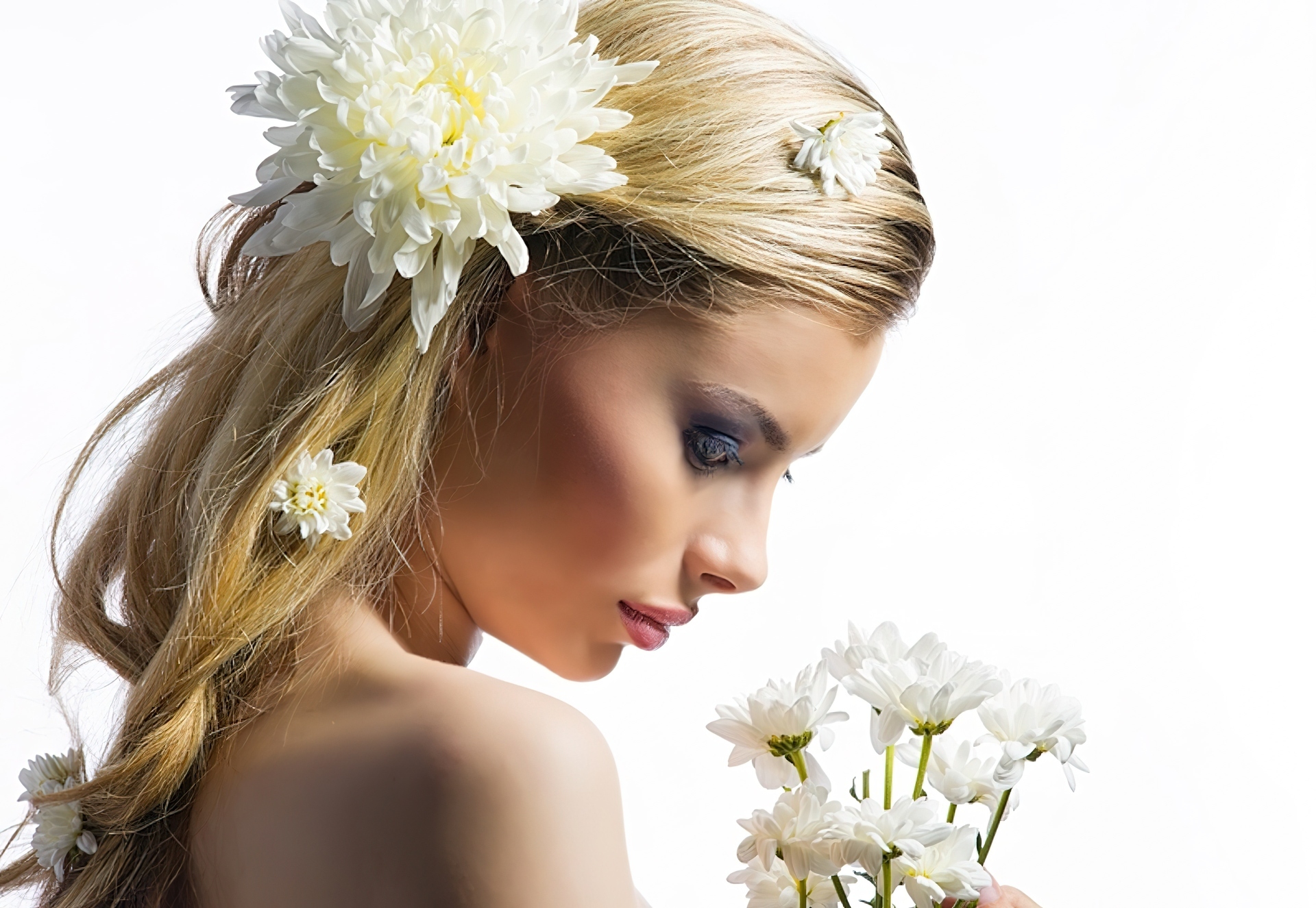 Edytor tapety: Kobieta, Makijaż, Białe, Kwiaty