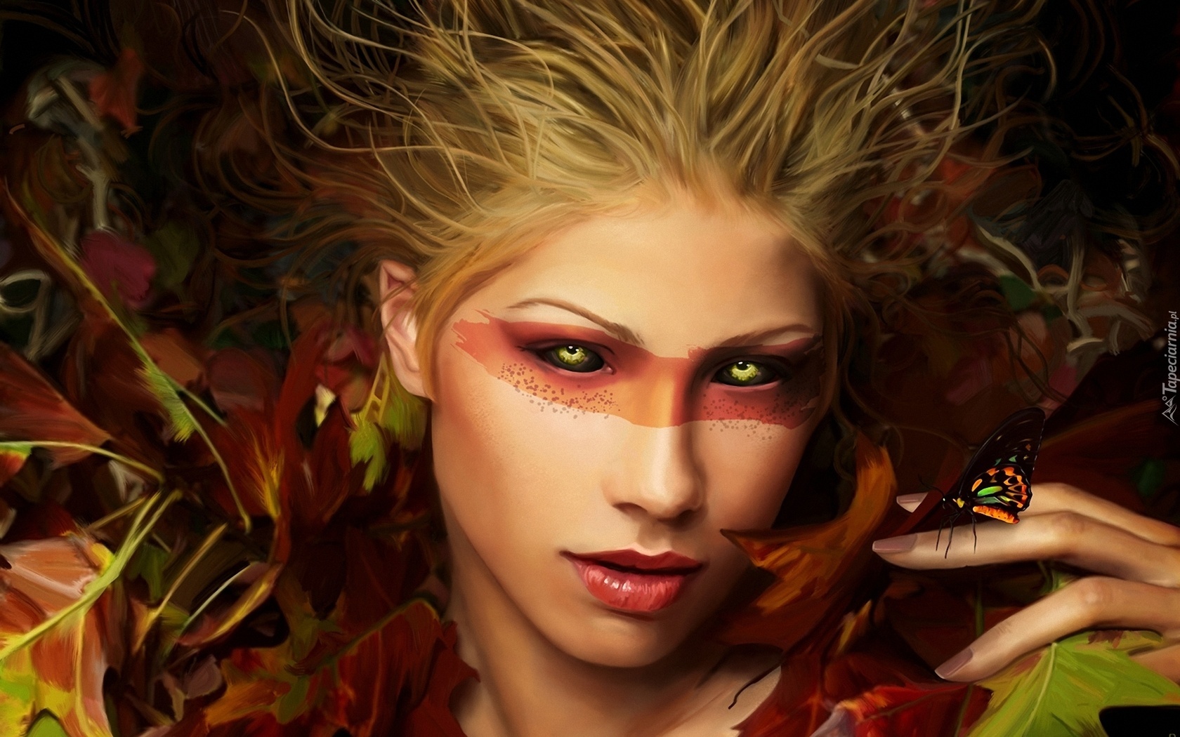 Edytor tapety: Kobieta, Motyl, Liście