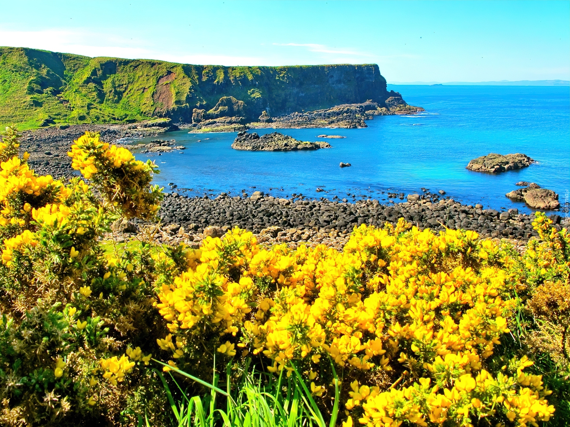 Edytor tapety: Żółte, Kwiaty, Ocean, Klif