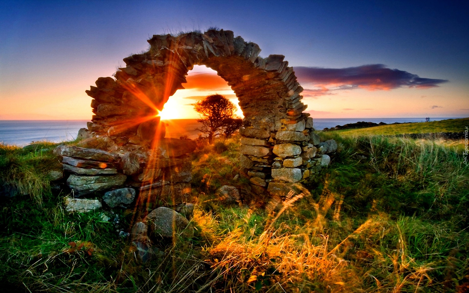 Edytor tapety: Zachód Słońca, Kamienie, Chmury