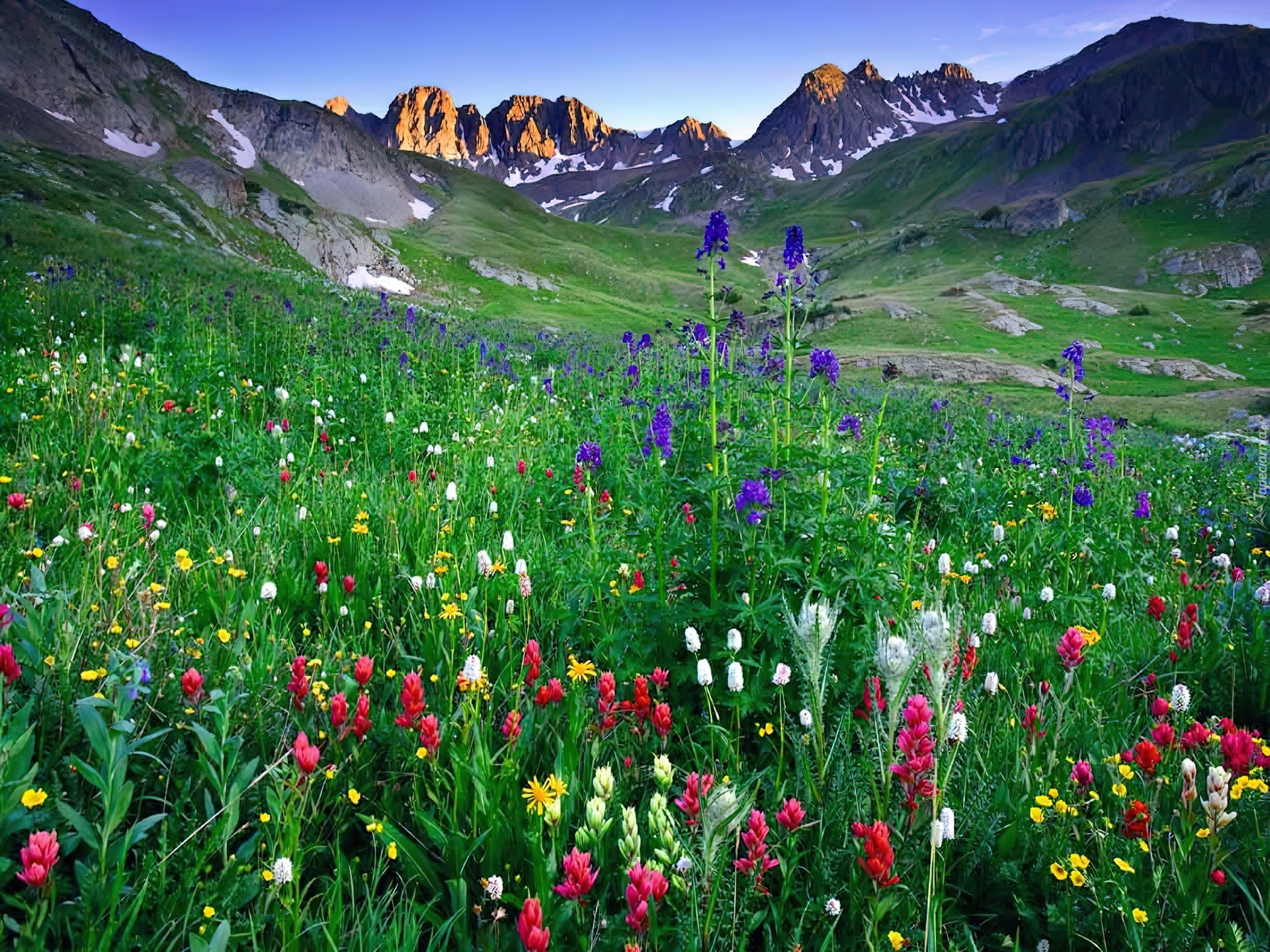 Edytor tapety: Góry, Łąka, Kolorowe, Kwiaty
