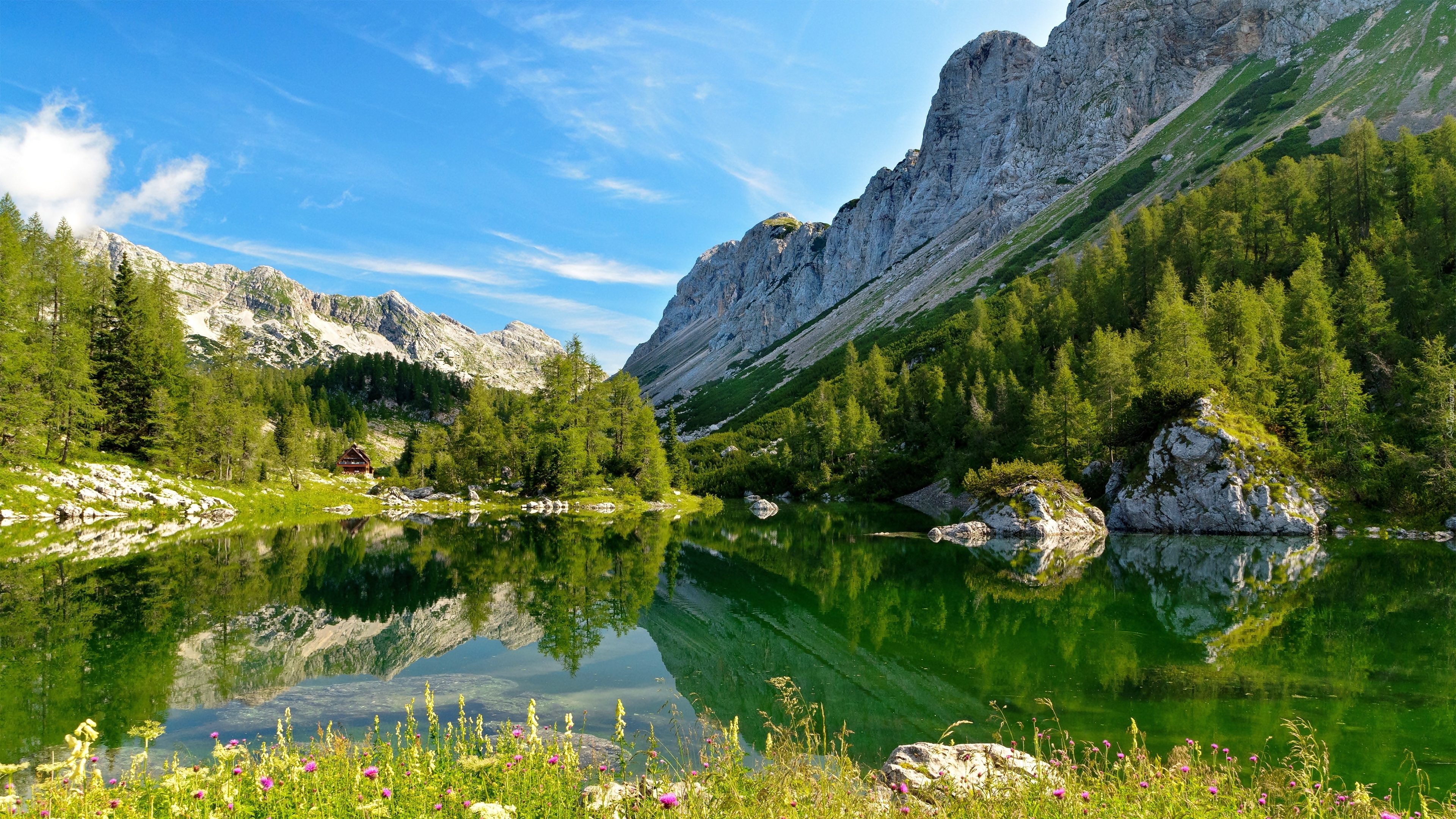 Edytor tapety: Jezioro, Góry, Chmury, Lasy