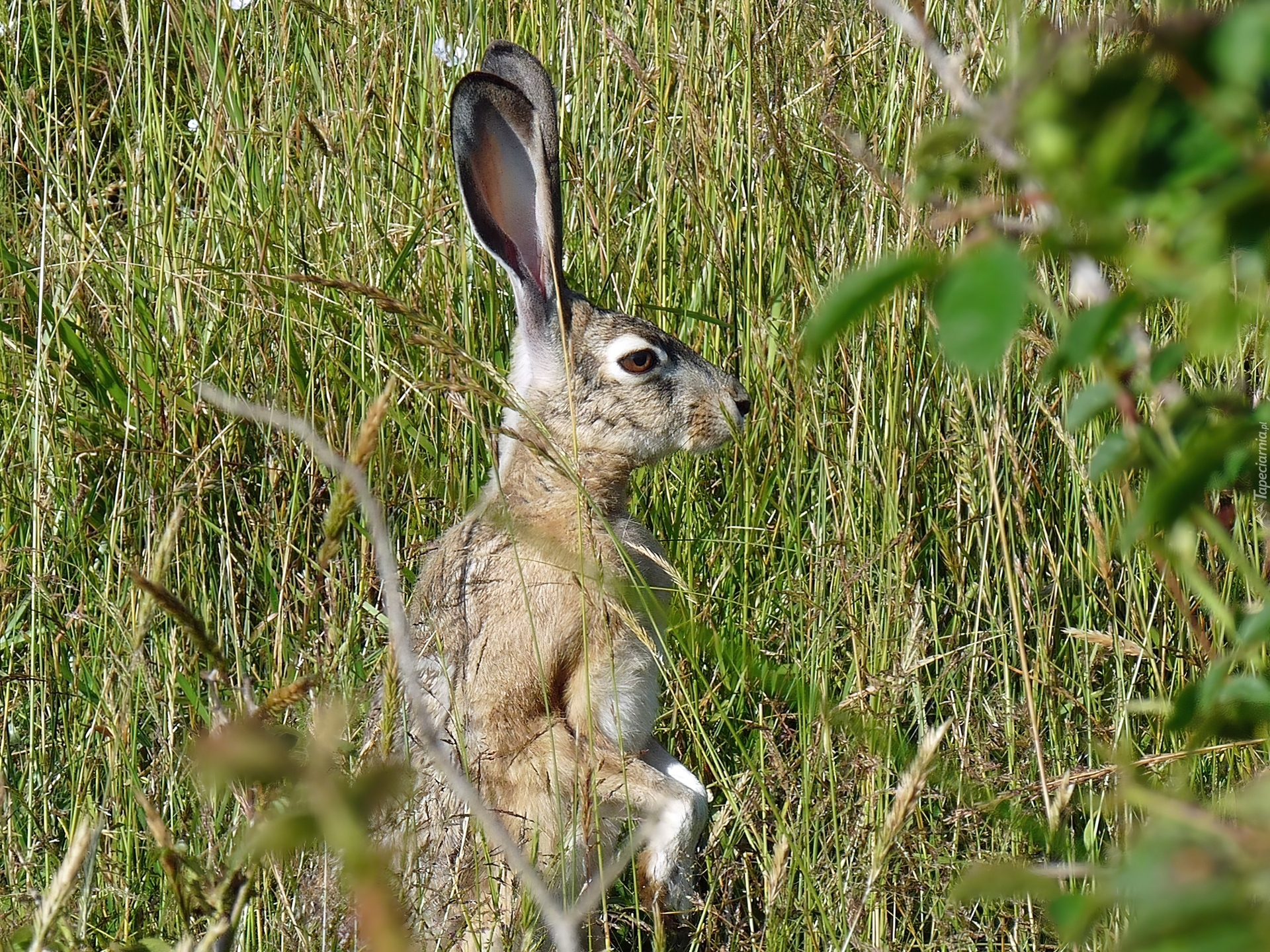 Edytor tapety: Stojący, Zając, W, Trawie
