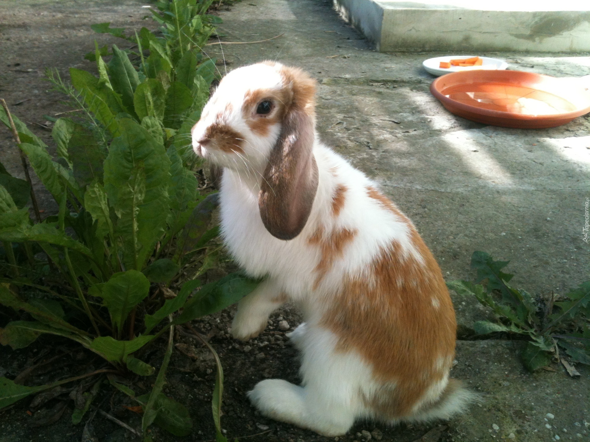 Edytor tapety: Królik, Liście, Mleczy