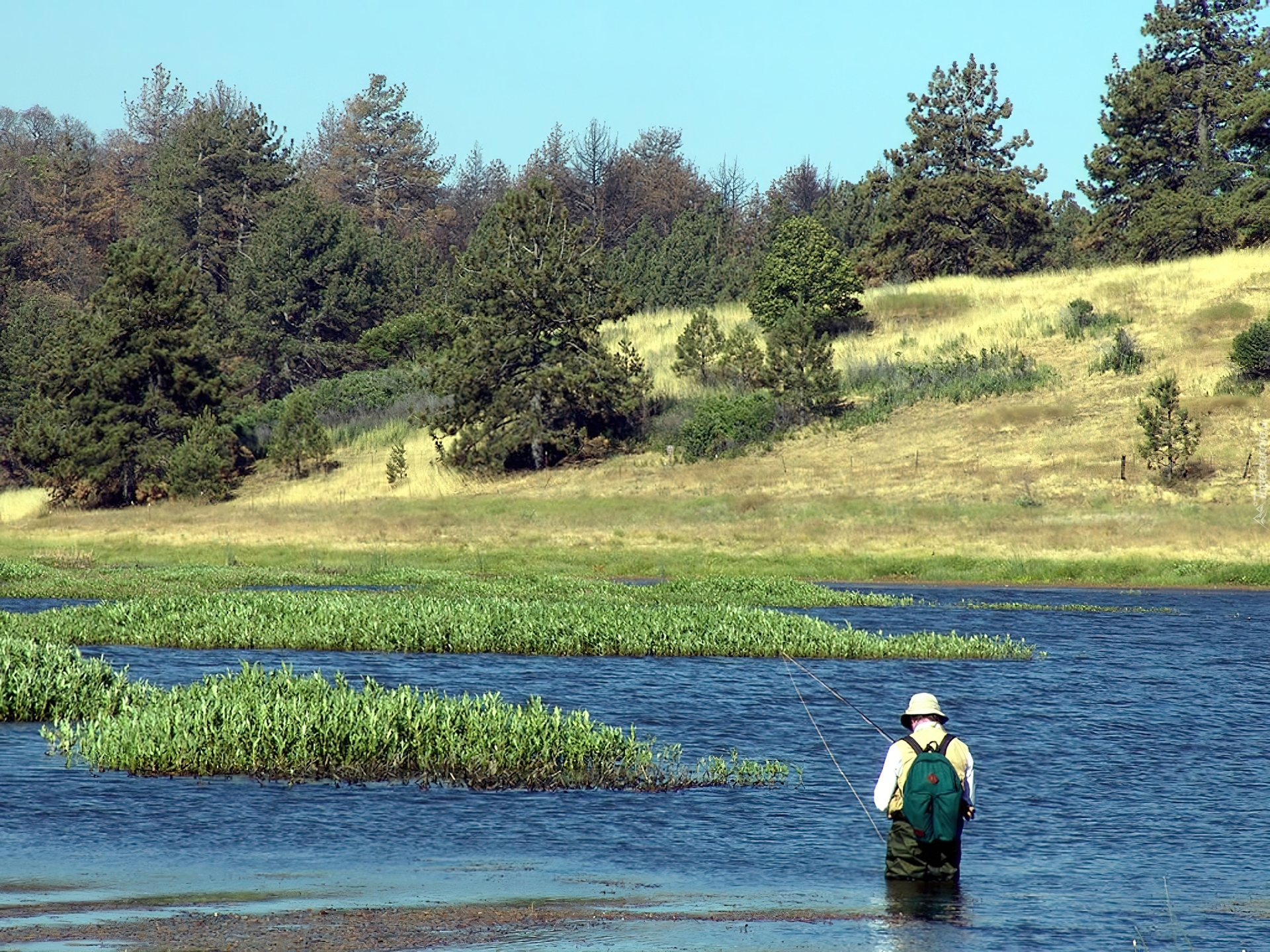 Edytor tapety: Rzeka, Wędkarz, Drzewa