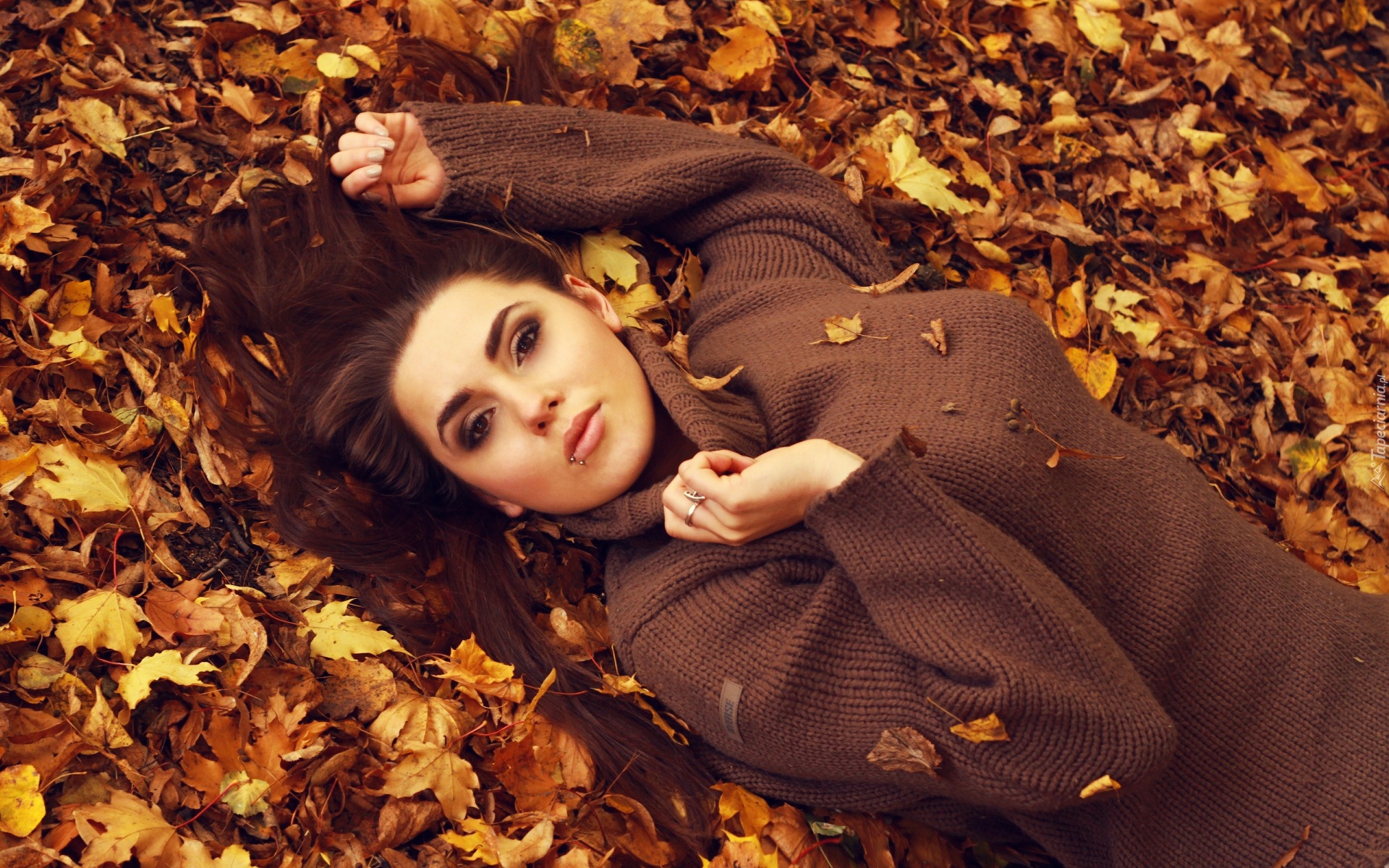Edytor tapety: Kobieta, Liście, Jesień