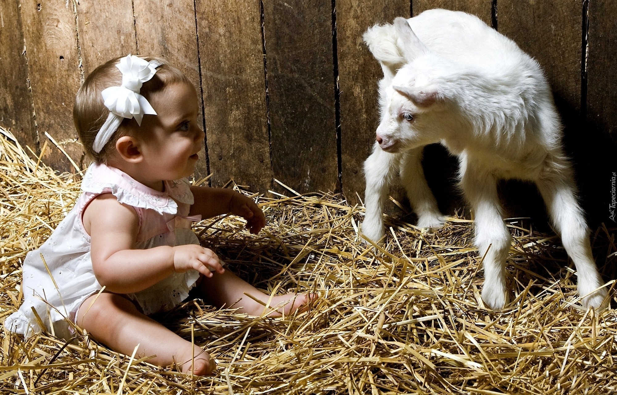 Edytor tapety: Dziewczynka, Koza, Słoma