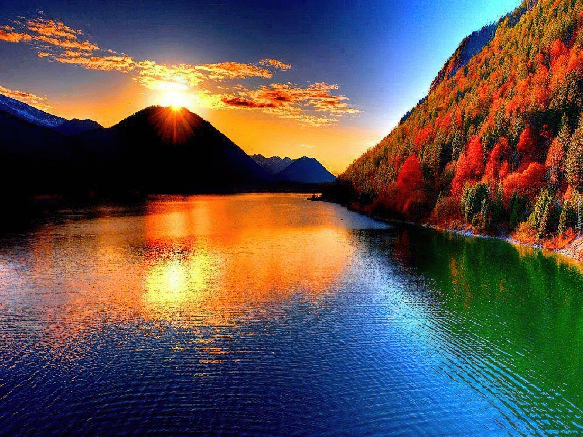 Edytor tapety: Góry, Zachód, Słońca