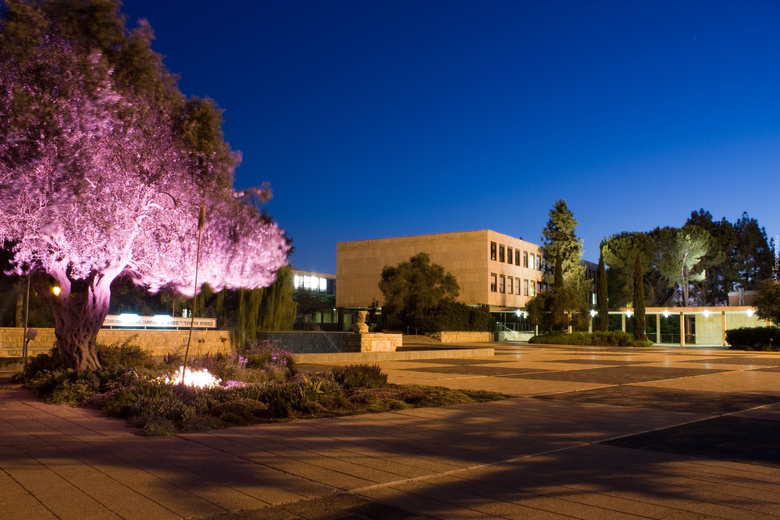 Edytor tapety: Uniwersytet, Jerozolima, Podświetlone, Drzewo, Noc